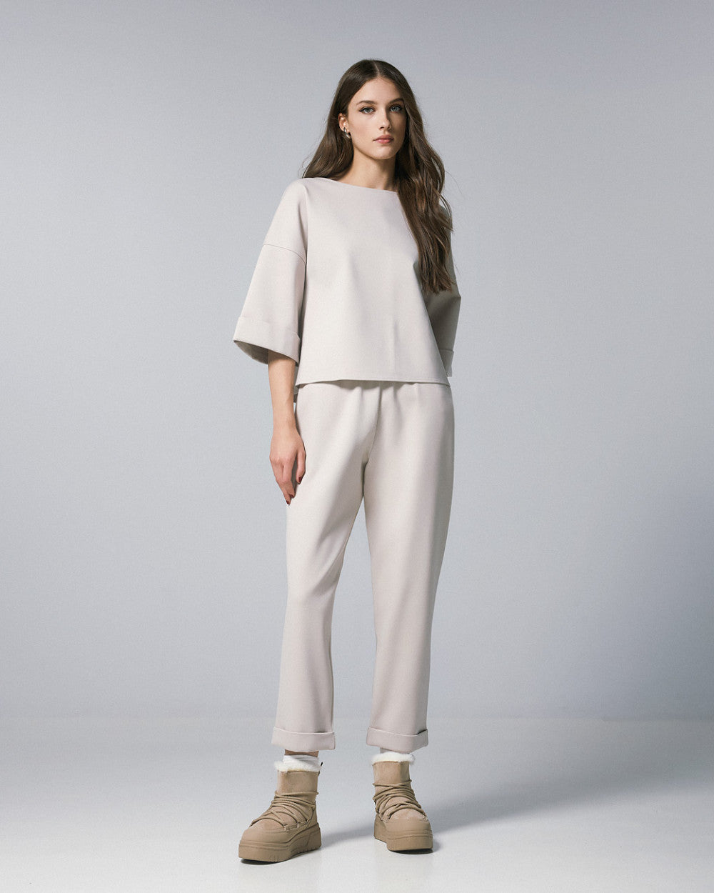 54-2155/5118 Asymmetric Top with Elastic Waistband Pants بلوزة غير متماثلة مع بنطال بخصر مطاطي