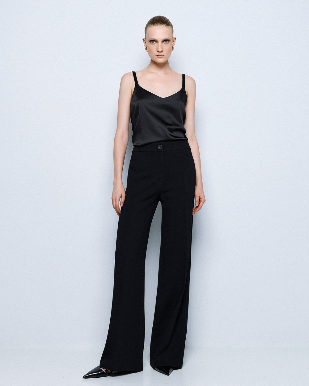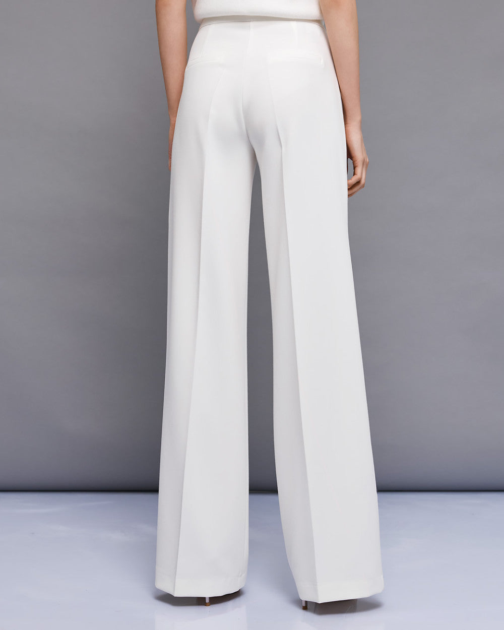 Buttoned Zippered High Waist Wide Leg Pants with side pockets, crease details and decorative back welt pockets