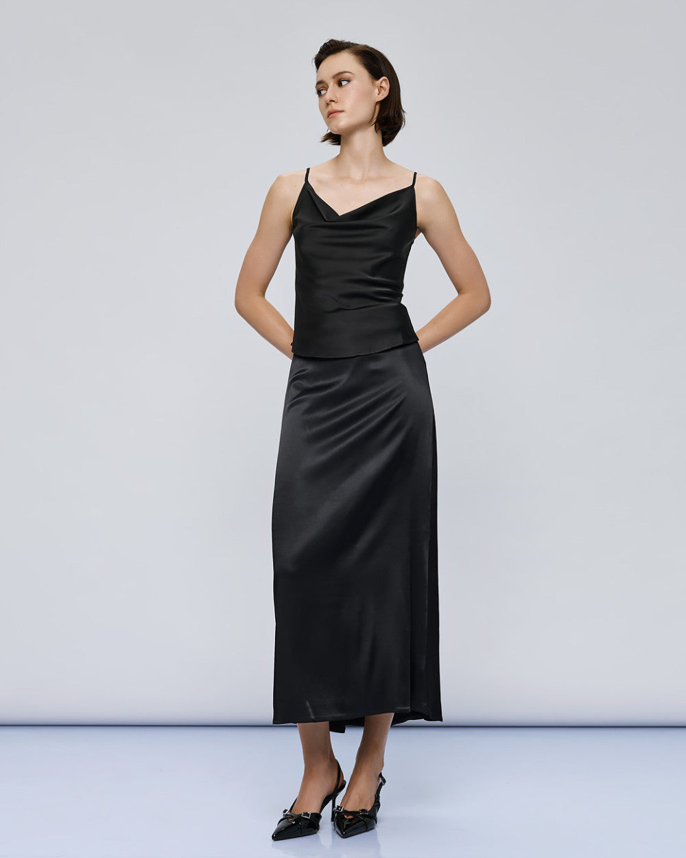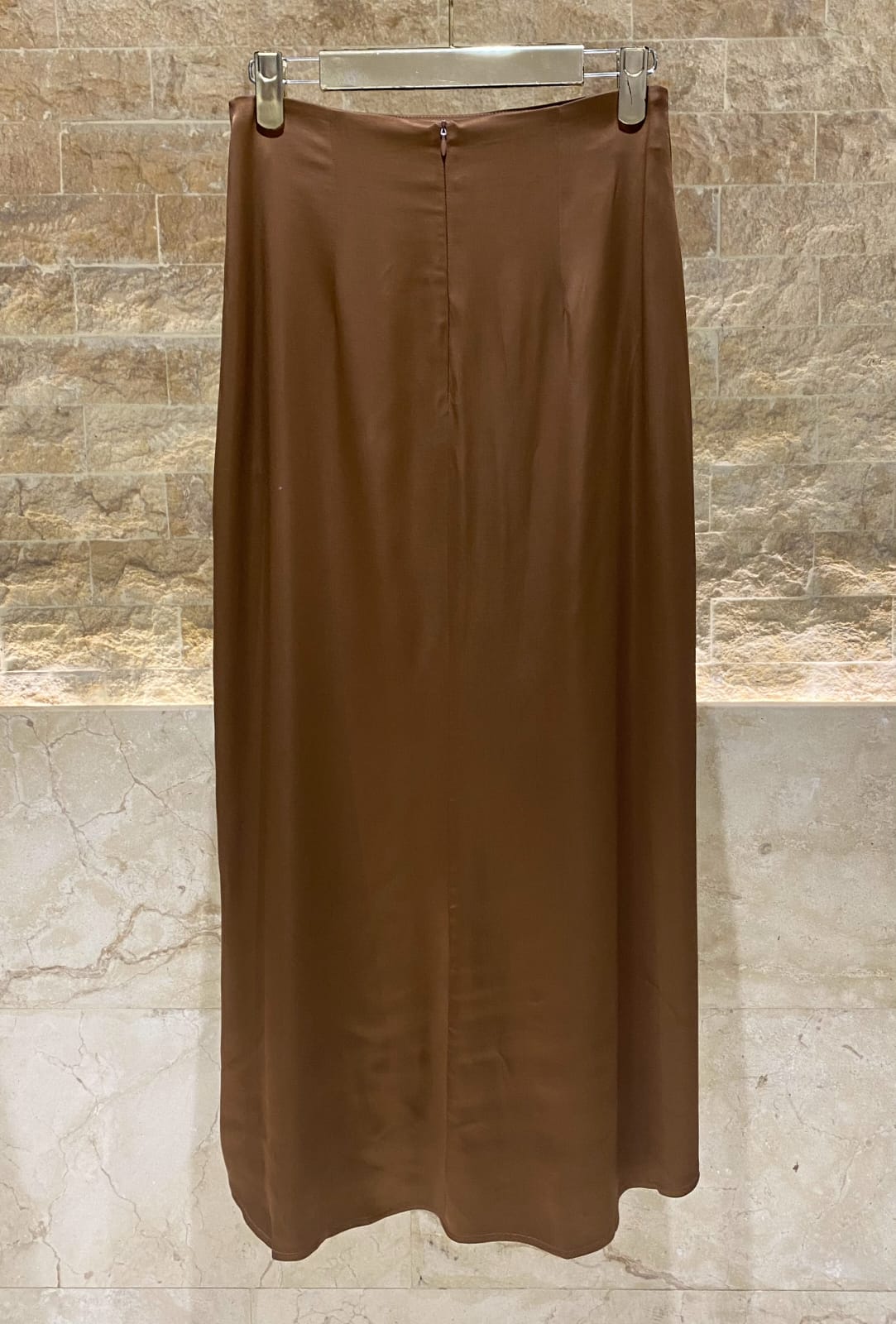 Regular Fit Midi Satin Skirt with hidden back zippered