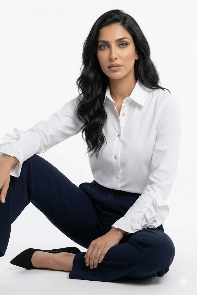 32817 قميص أبيض مع كشكشة كبيرة جدًا