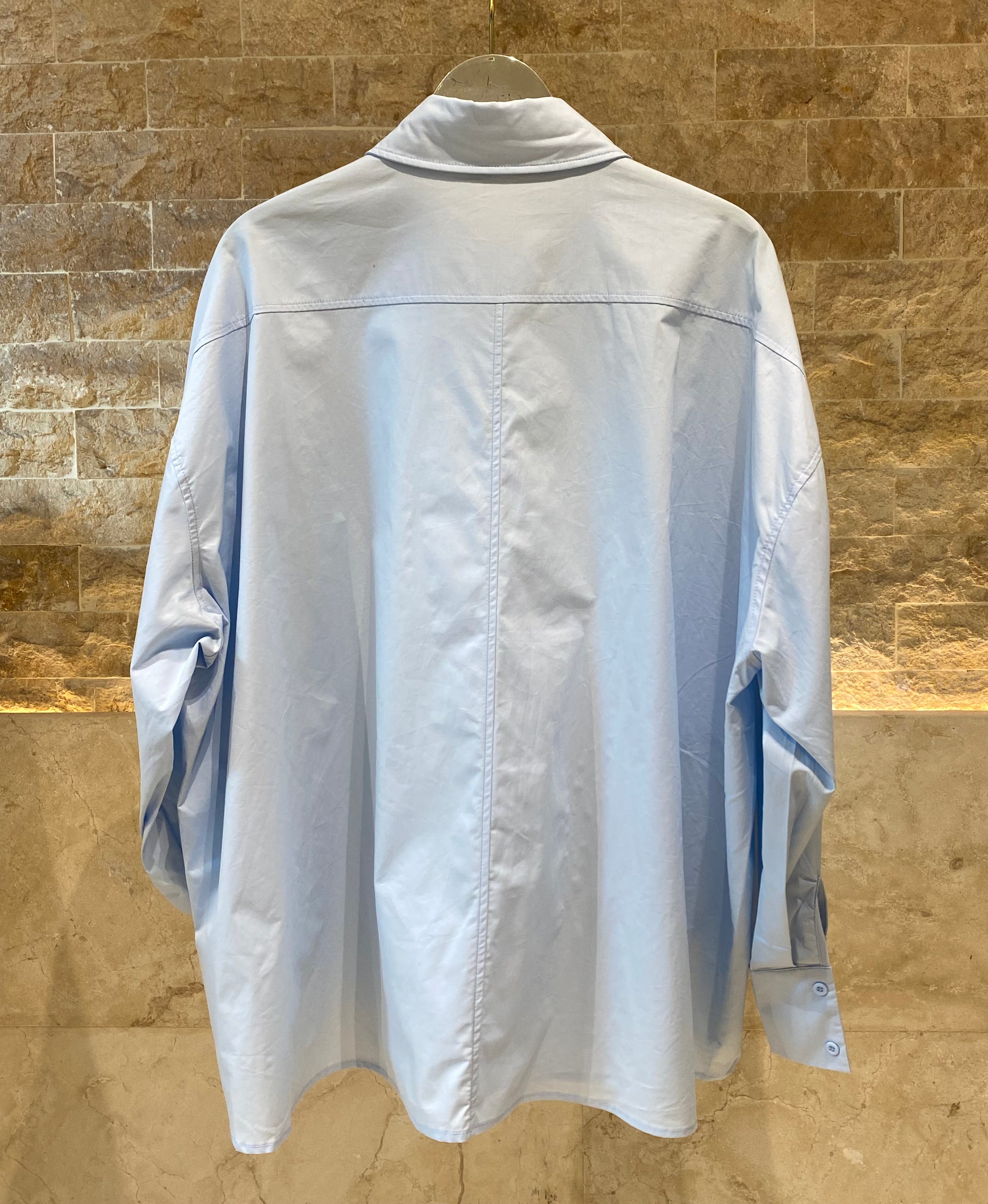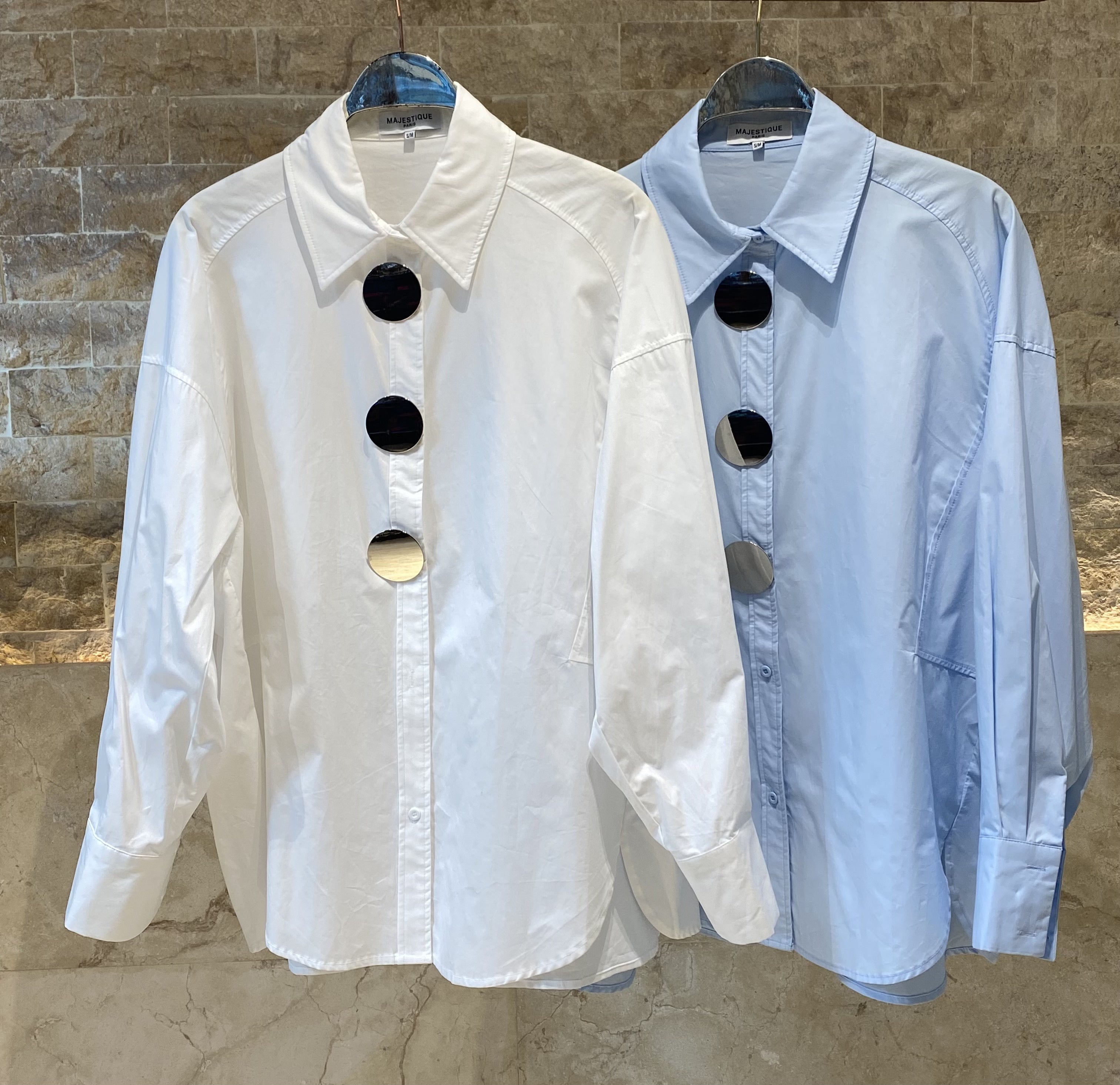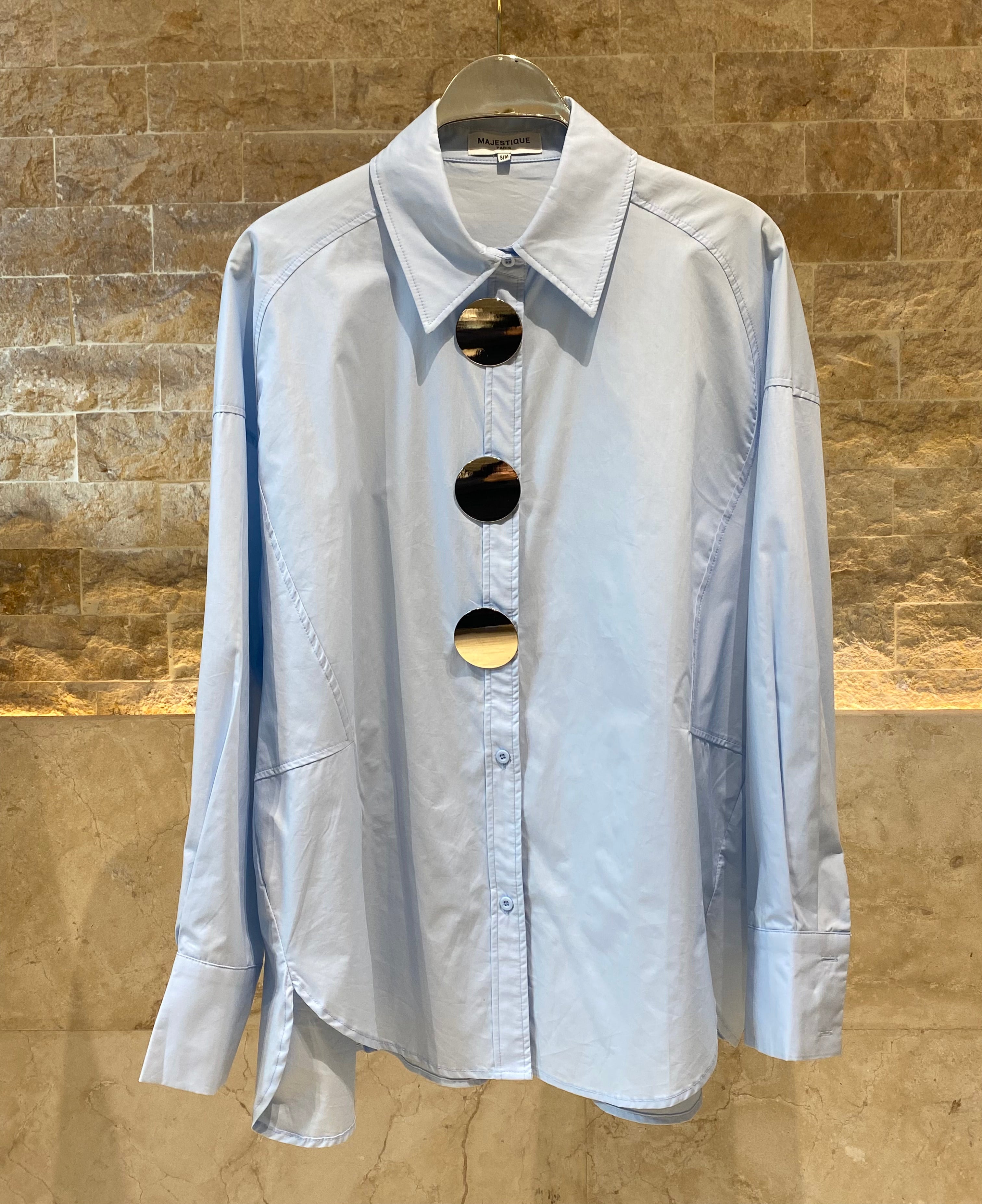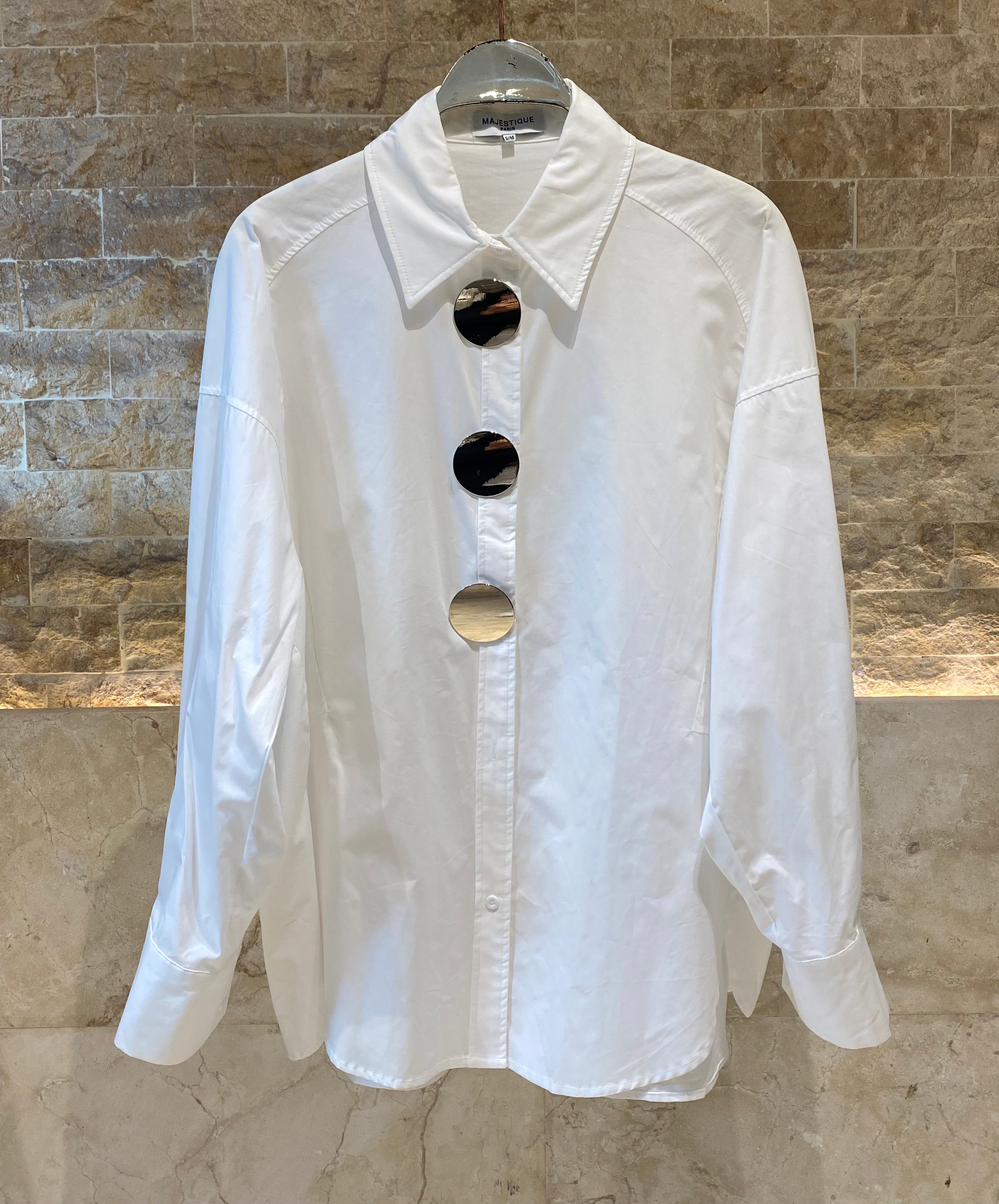 Shirt Collared Buttoned Oversized Shirt with moon fade silver big button details, drop shoulder and long puffed sleeve with buttoned cuff