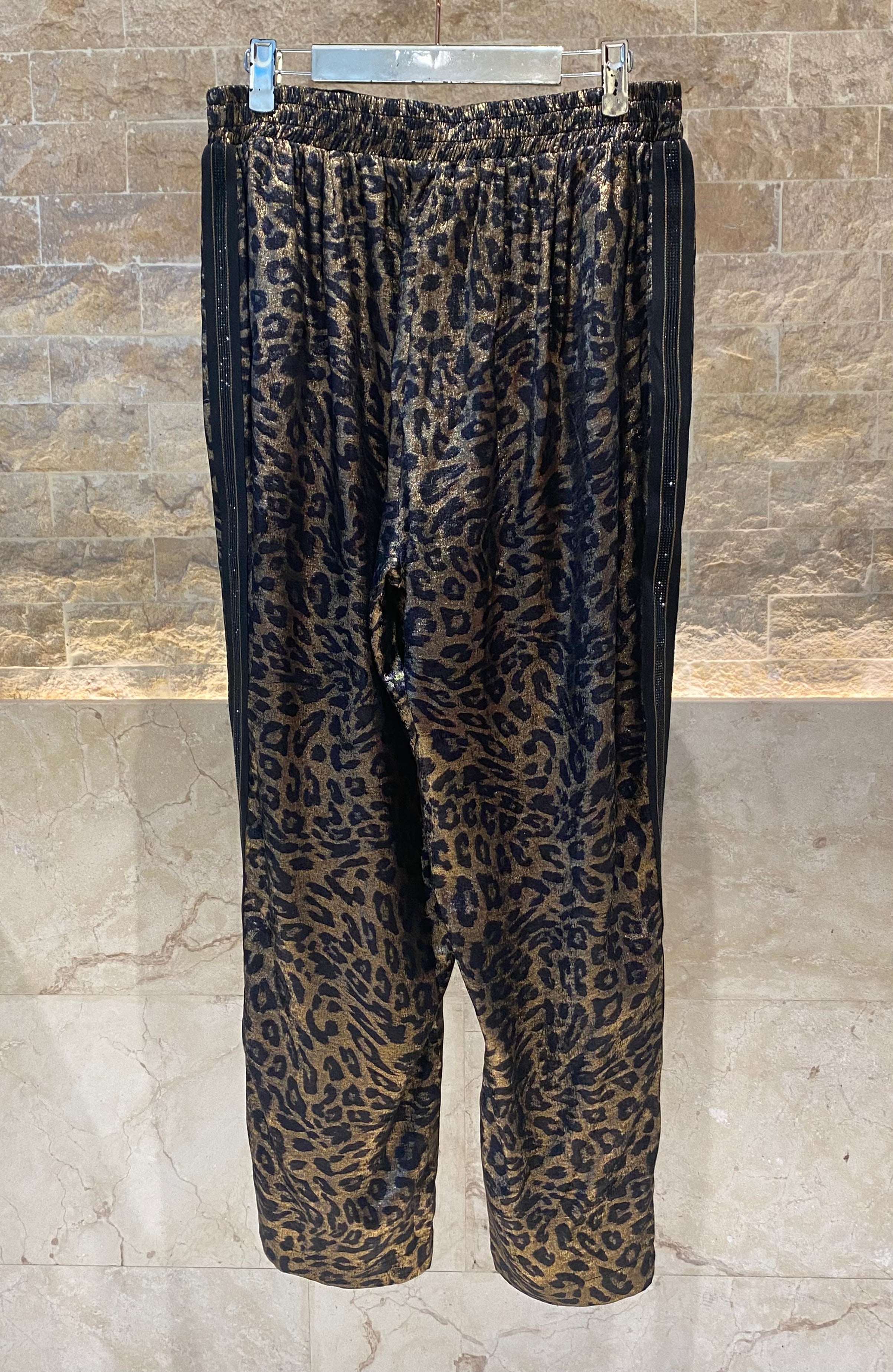 8401.3017/2039 Metallic Leopard Shirt and Relaxed Tapered Pants قميص جلد النمر المعدني وبنطلون ضيق مريح