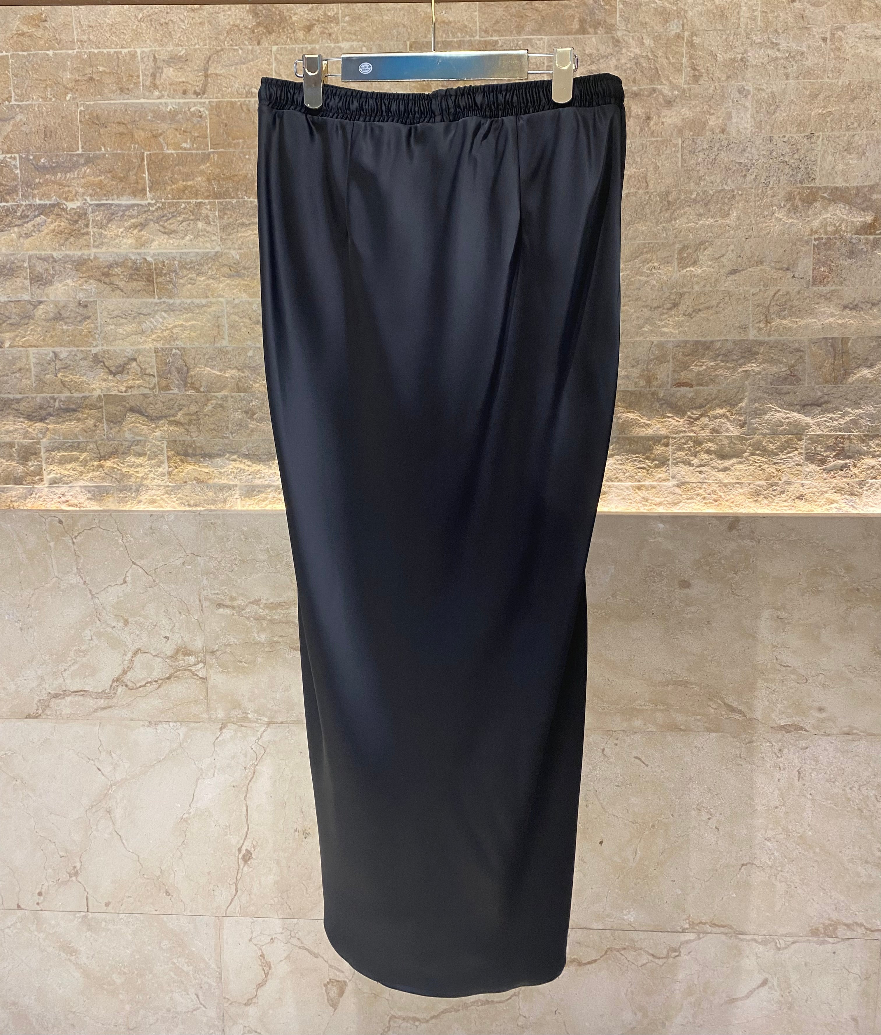 Elastic Waistband Satin A Line Long Skirt with adjustable drawstring waist ties detail