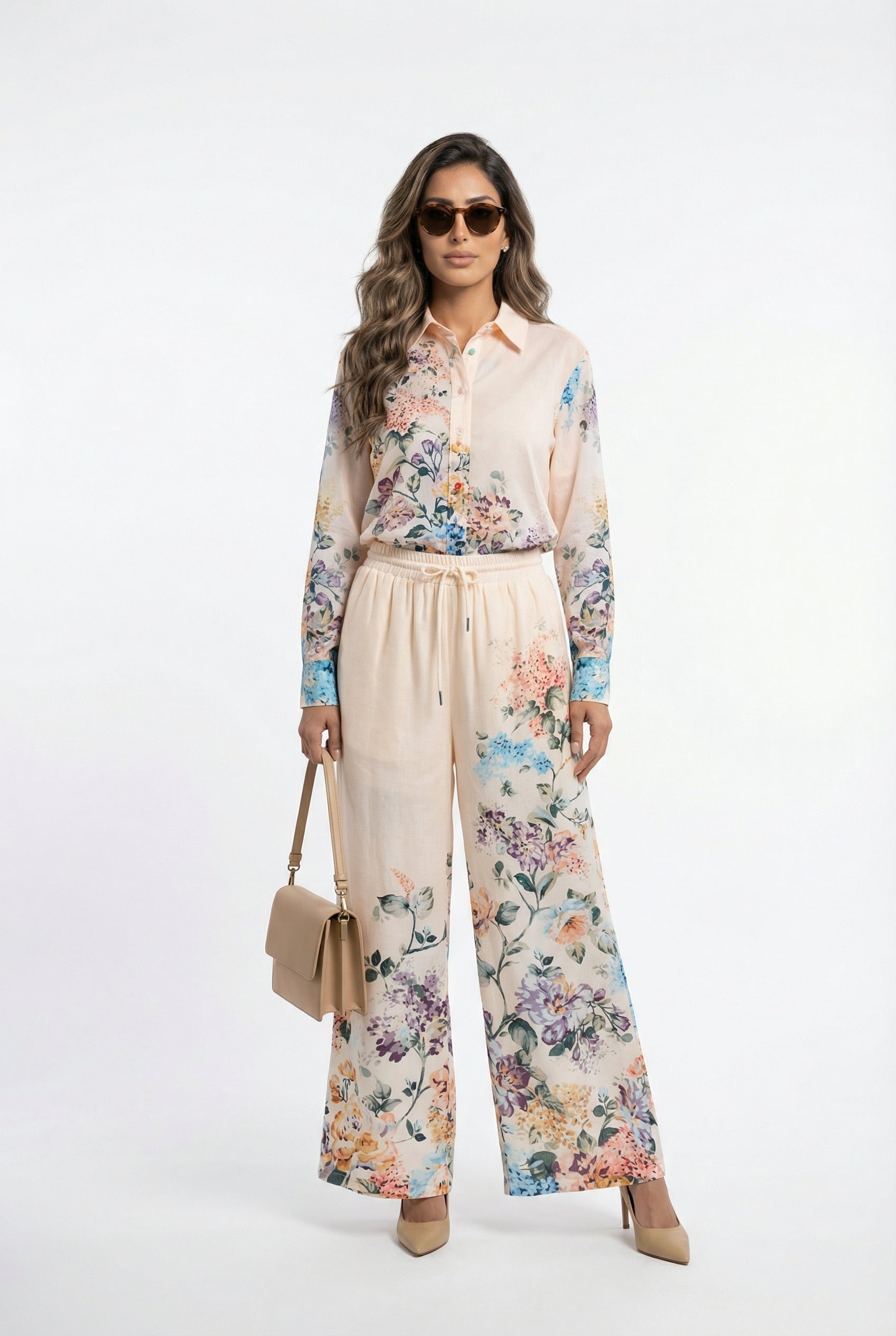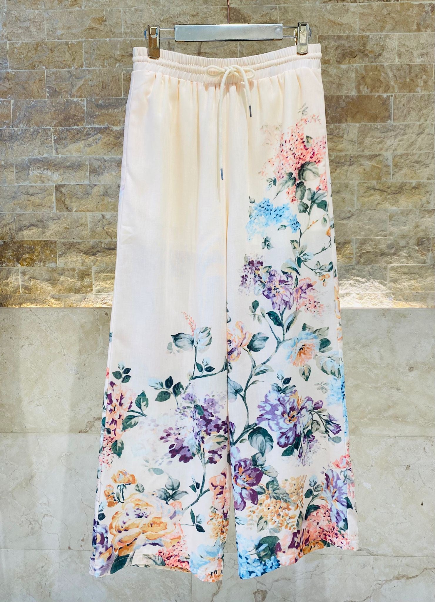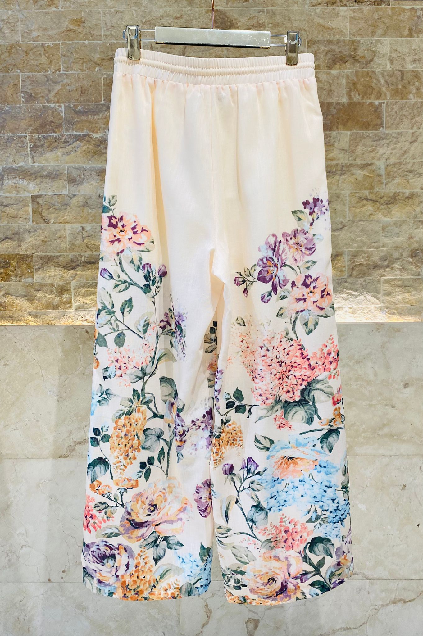 Faustine Floral Print Linen Pants بنطال كتان بطبعة زهور