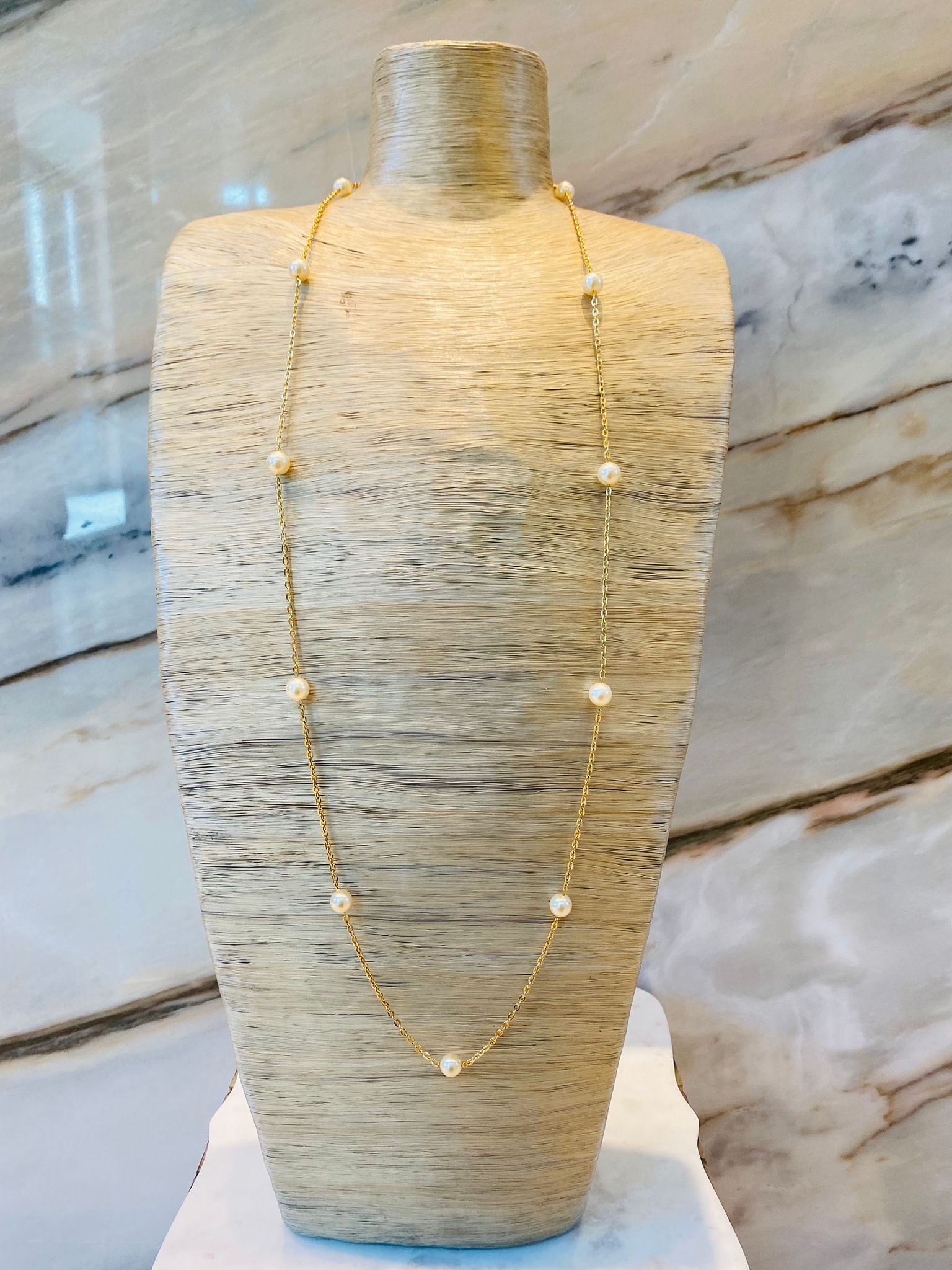 Long Chain Necklace with freshwater pearls detail