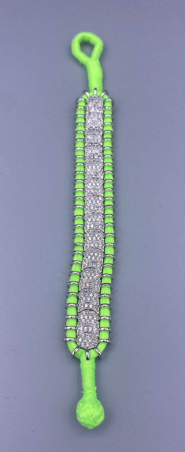 Light Lime Green Thread Thin Bracelet with Diamond Zircon in Round stone details