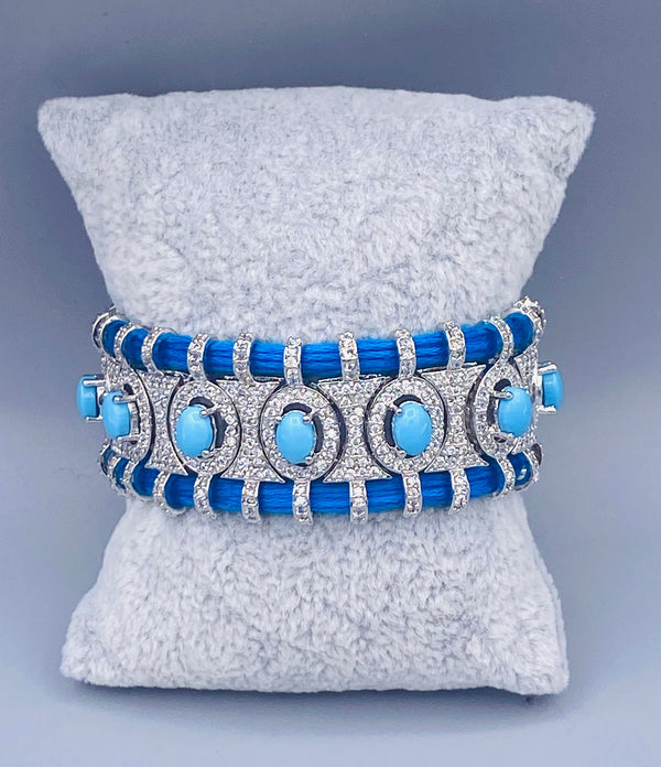 Blue Thread Bracelet with zircon diamond details and small sky blue oblong shaped stone details