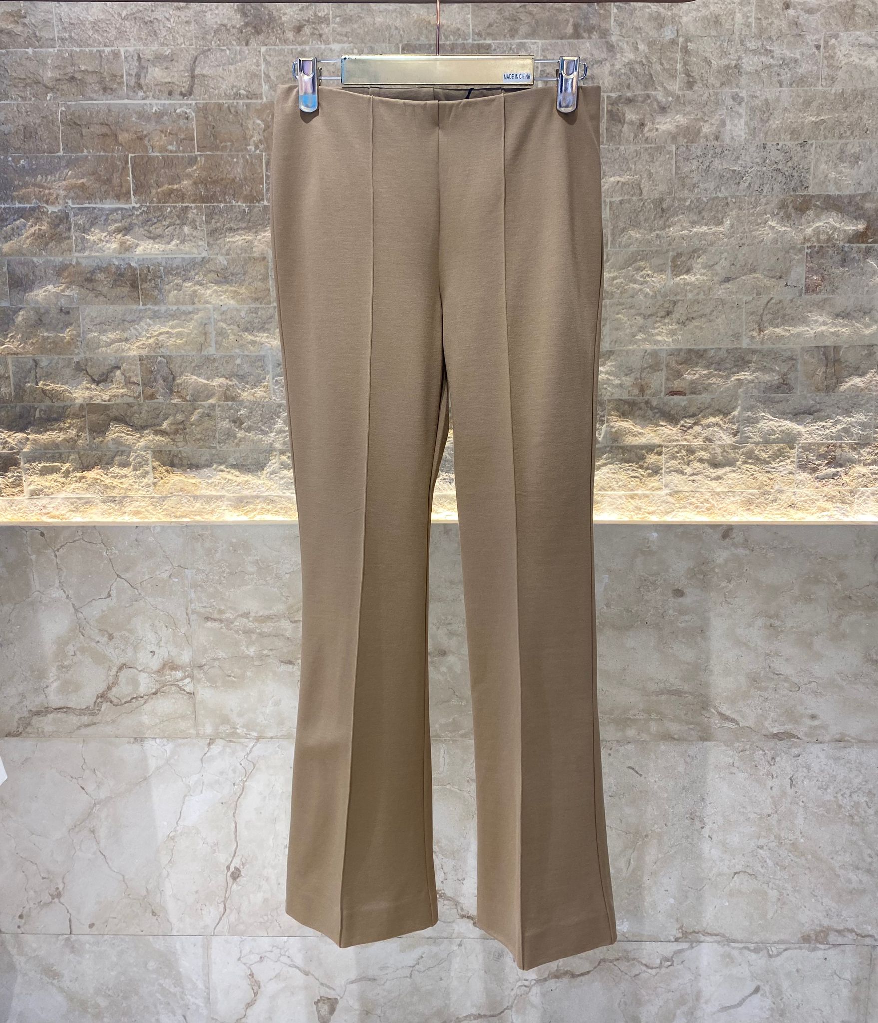 Elastic Waistband Basic Flare Pants with front stitched details