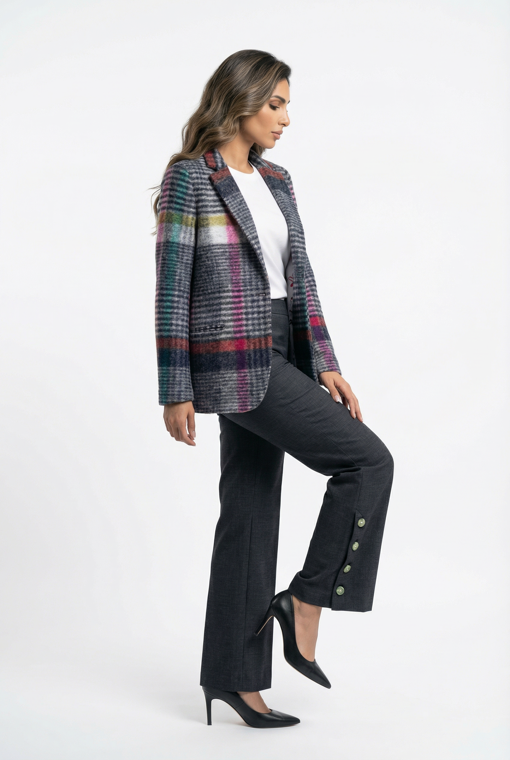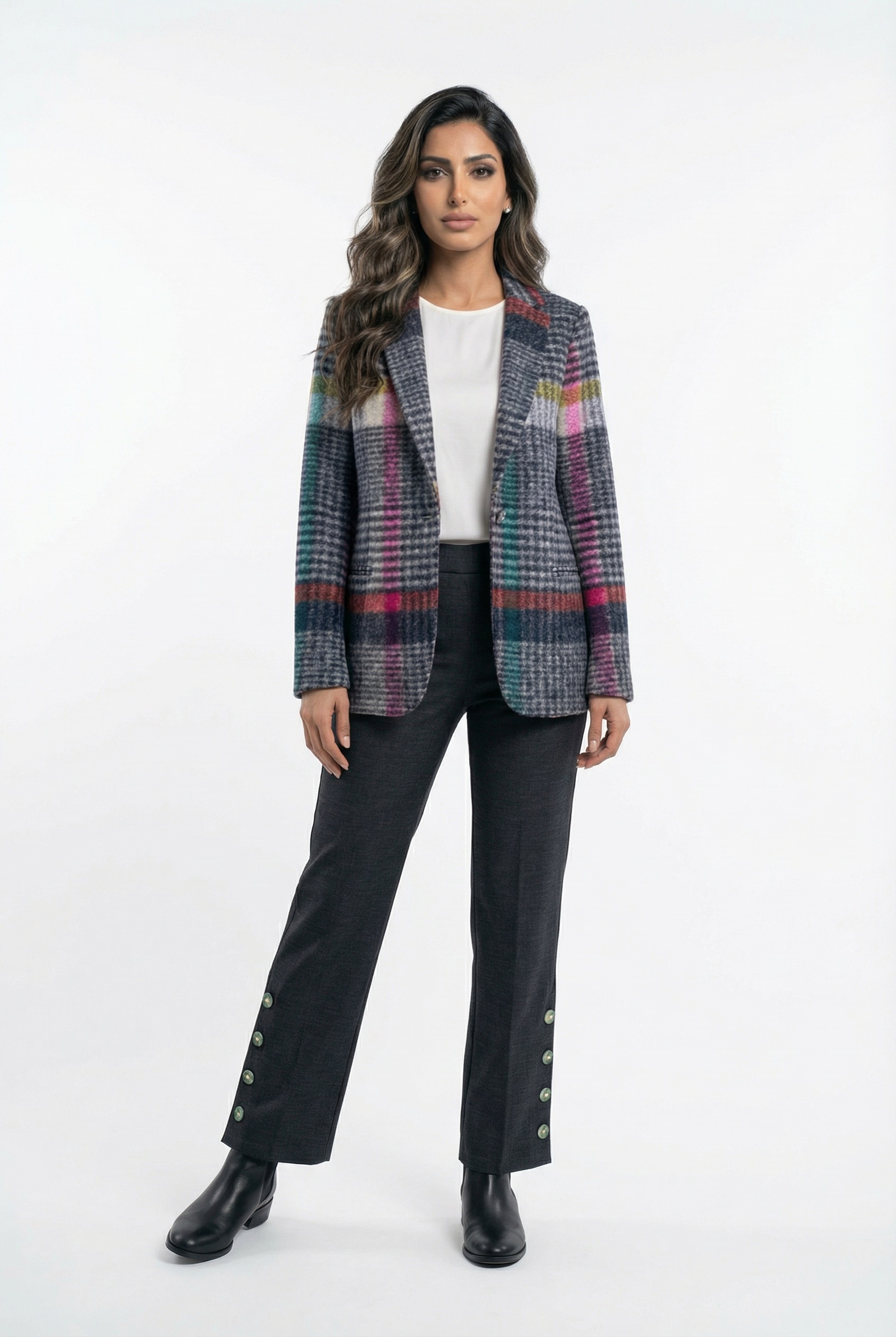 32792 Structured Cut Checkered Jacket سترة منقوشة بقصّة مهيكلة
