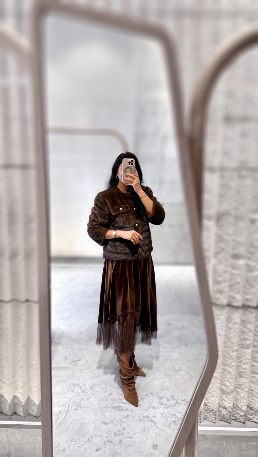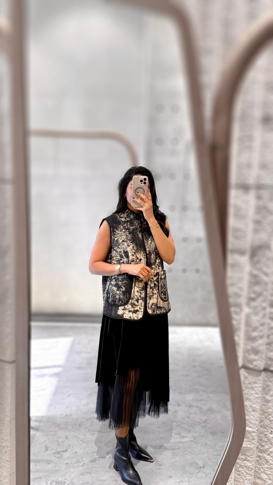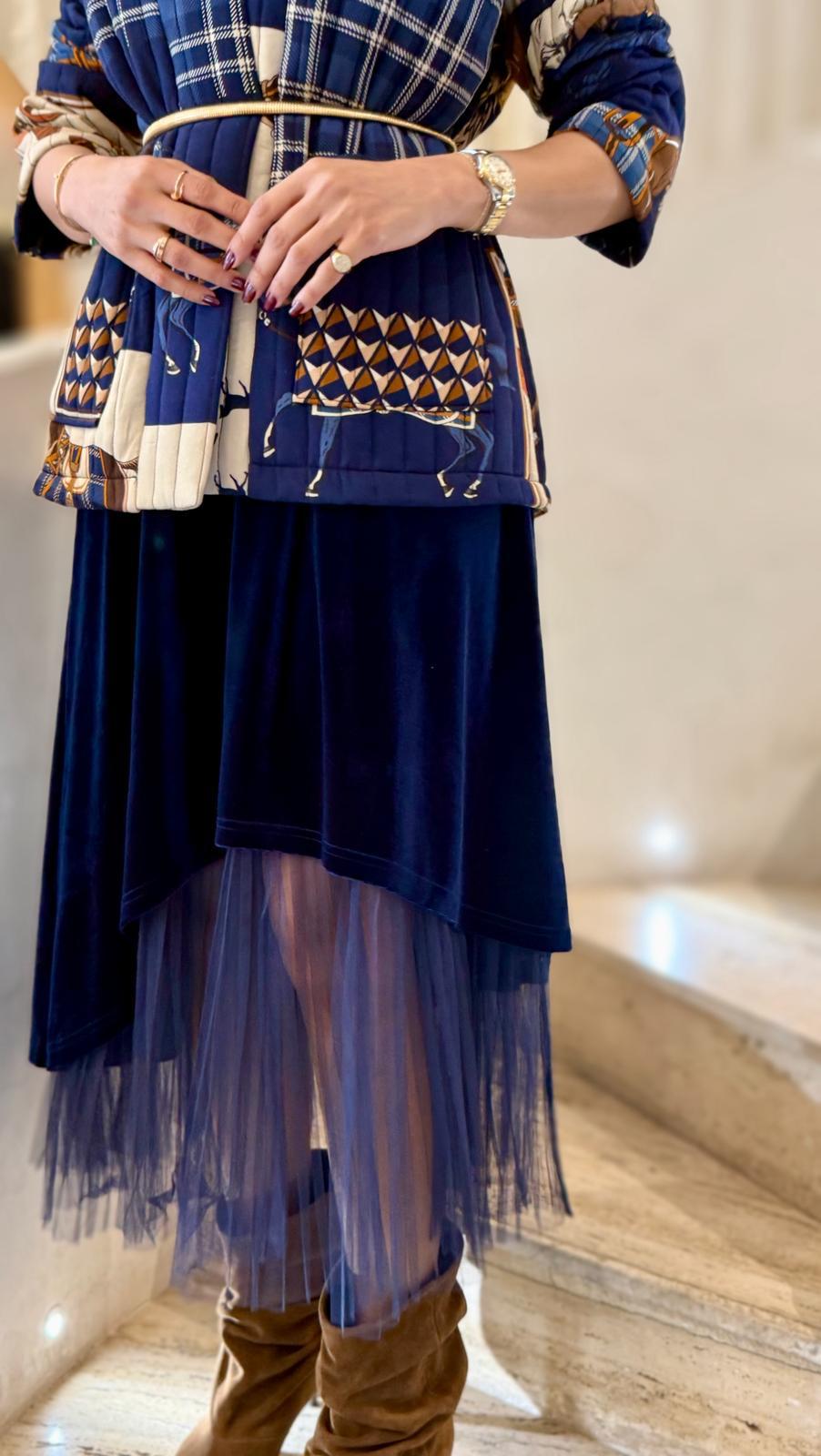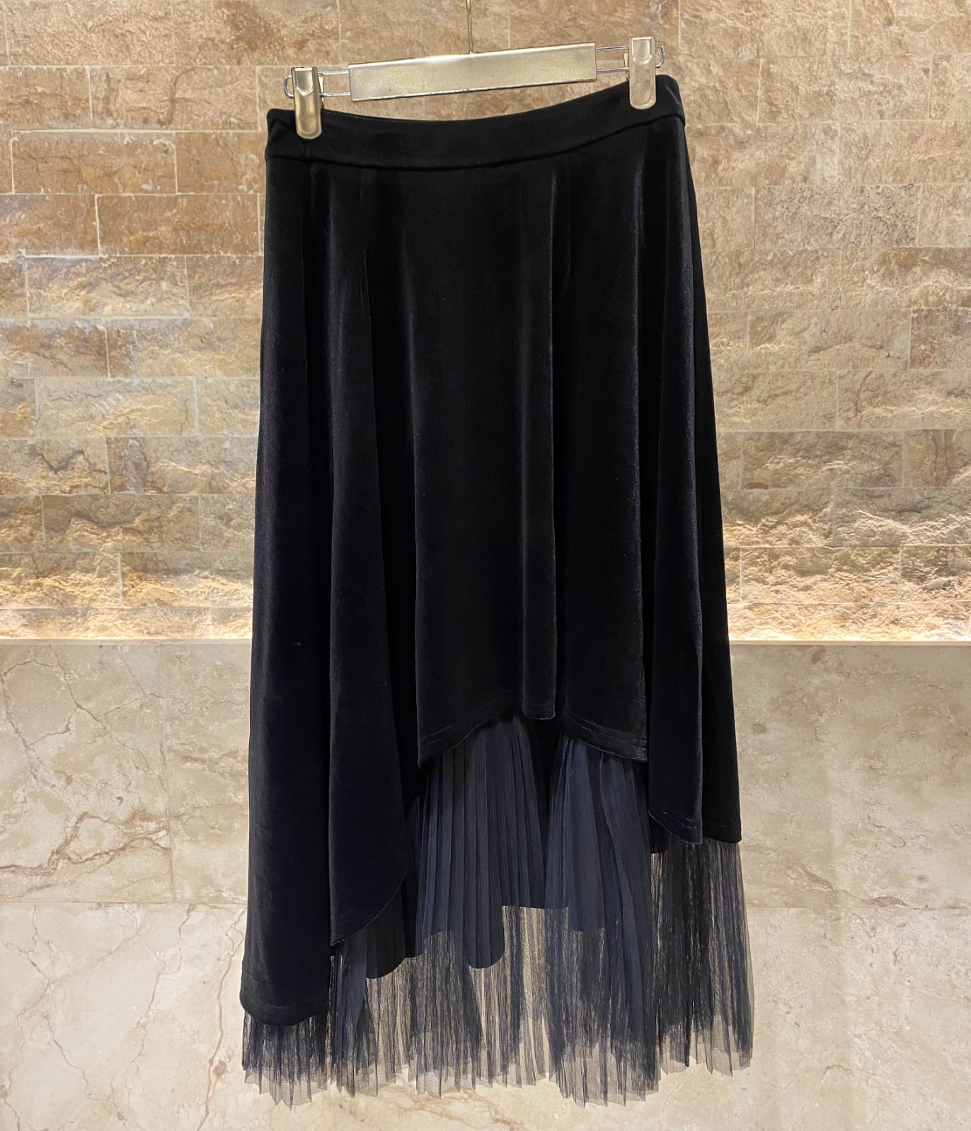 Side Zippered Asymmetrical Velvet Skirt with tulle details