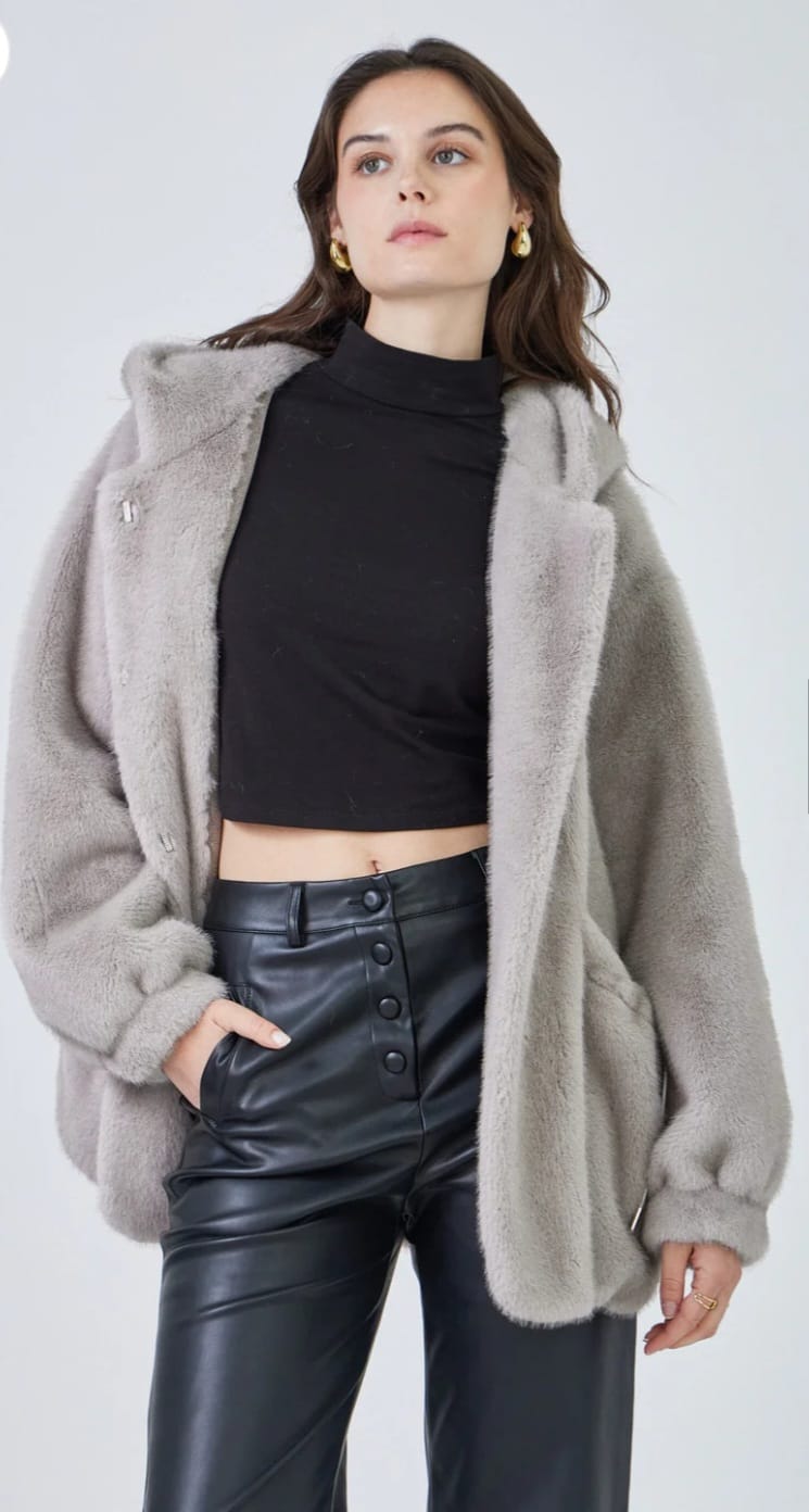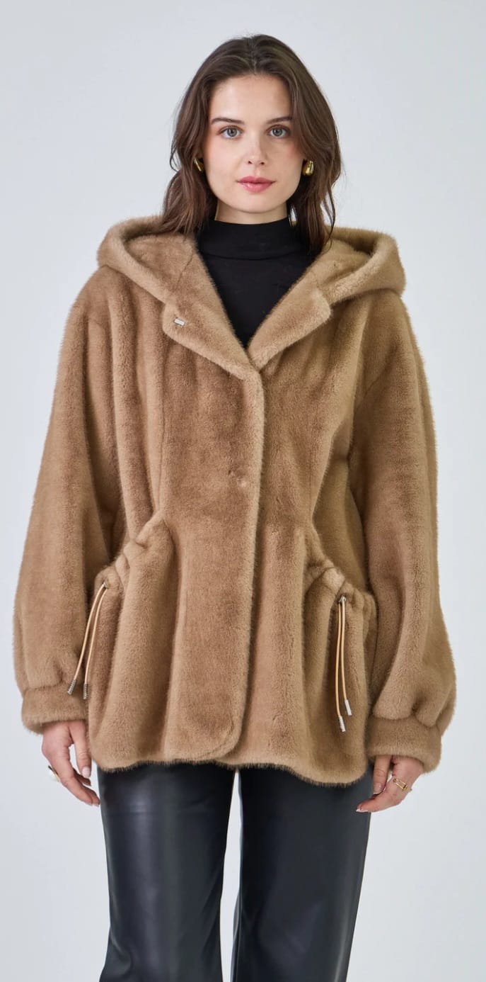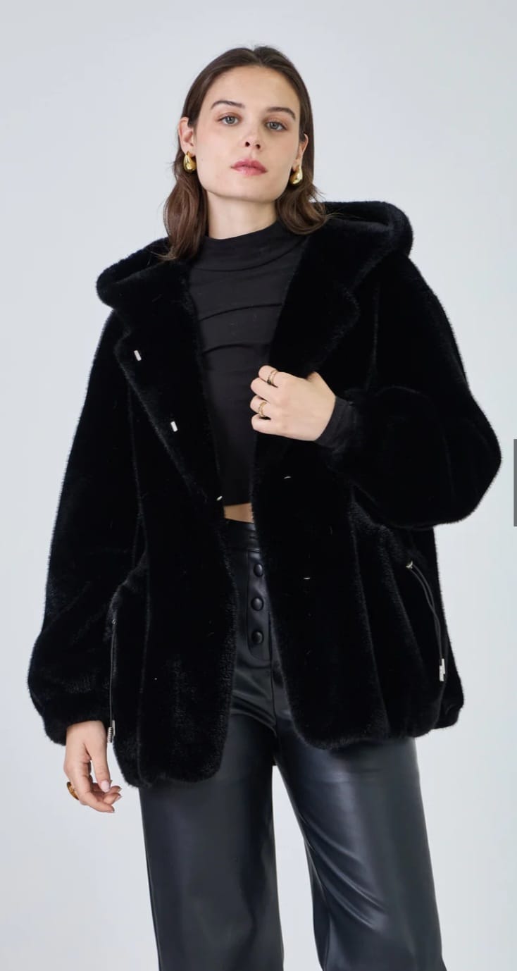Selena - Faux Fur Hooded Coat معطف بغطاء رأس من الفرو الصناعي