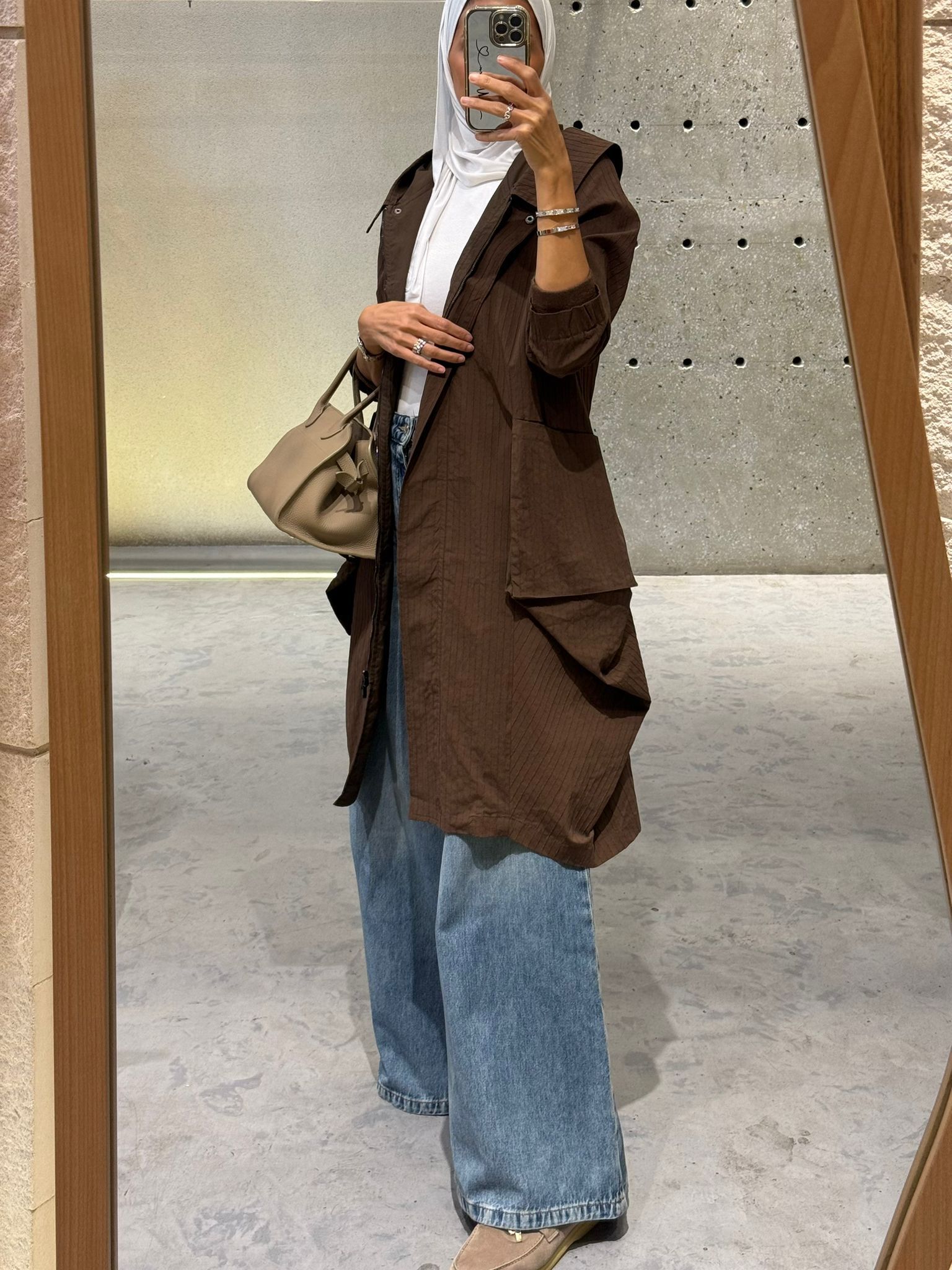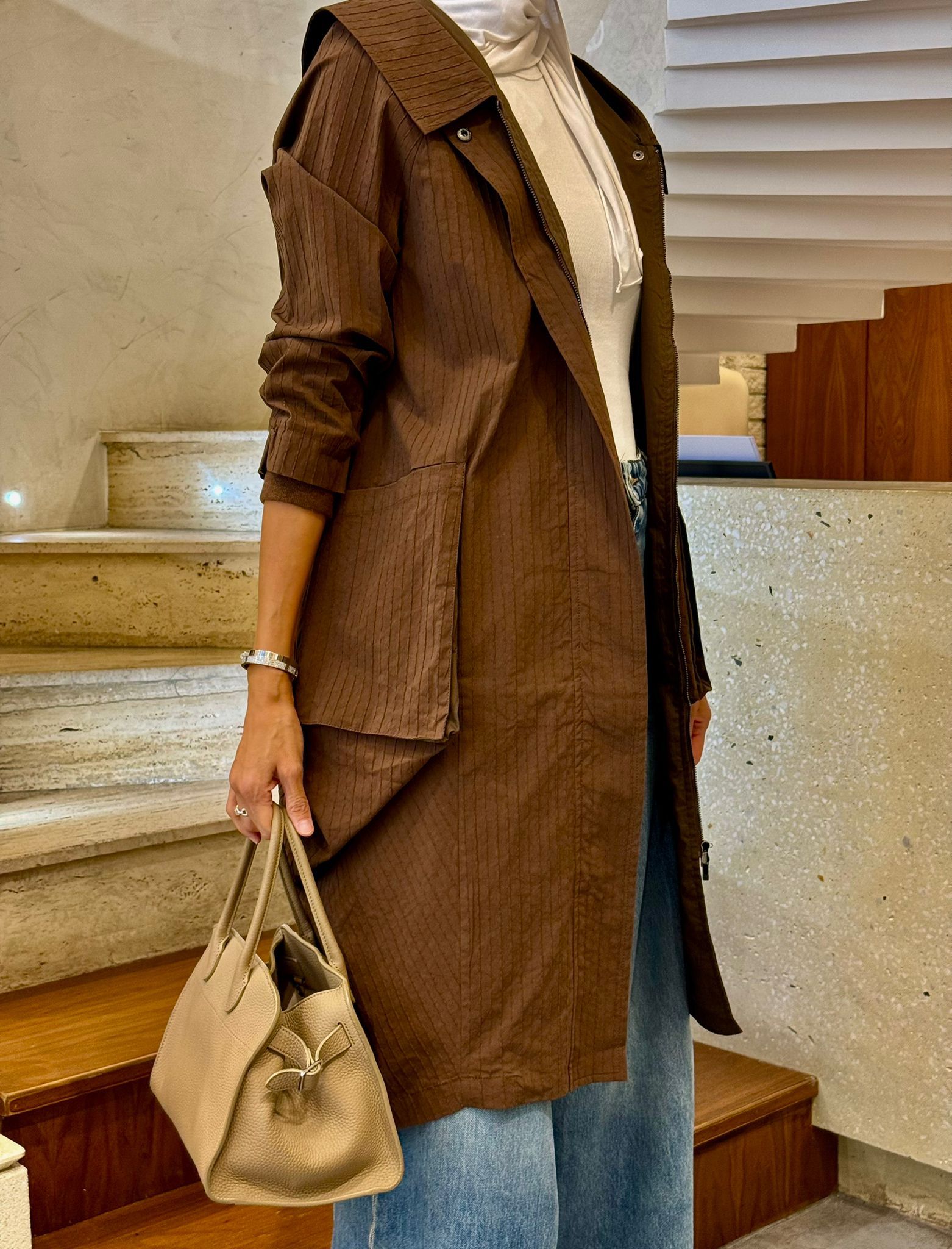 25AW-5066 معطف رسمي بغطاء رأس وسحاب وياقة