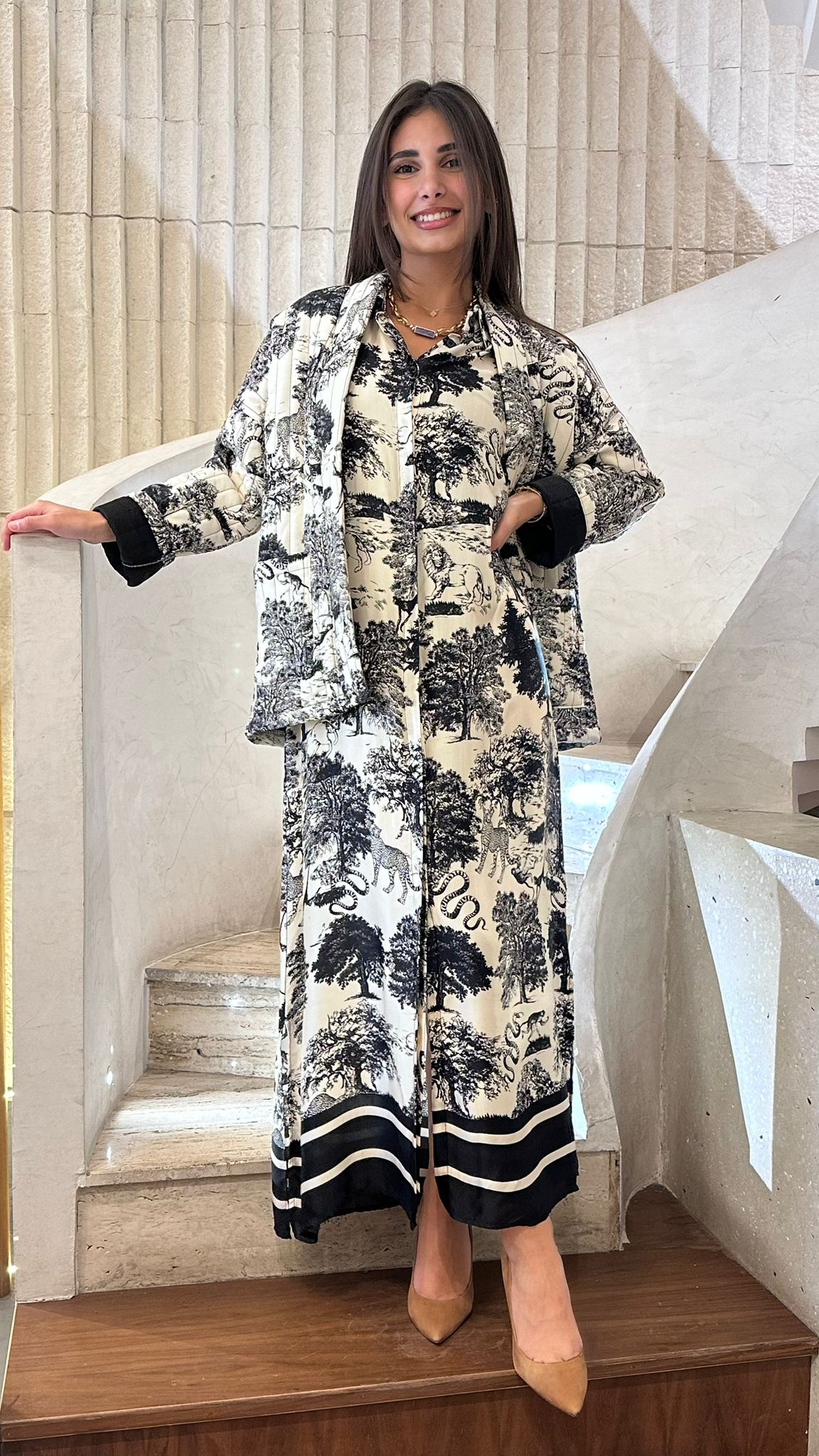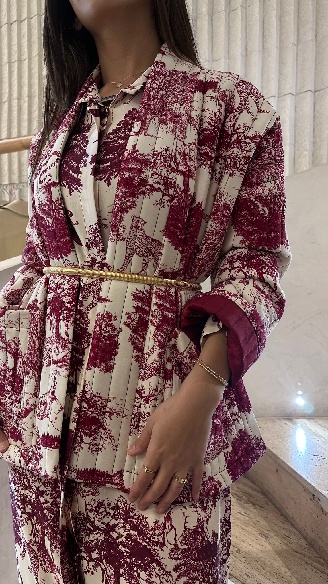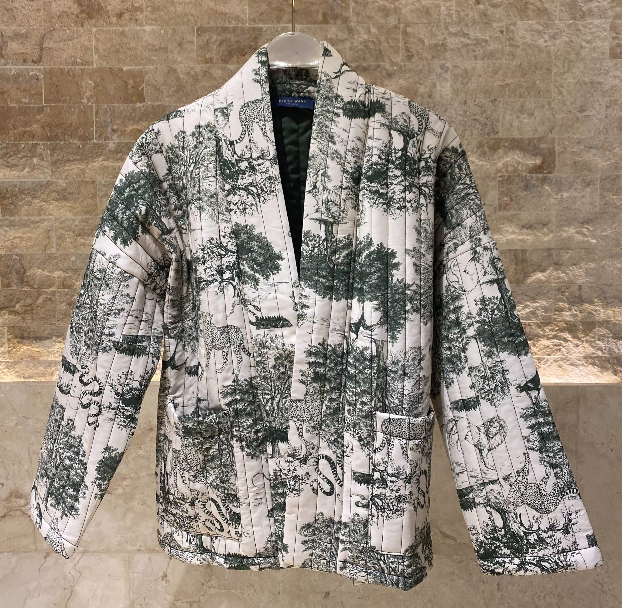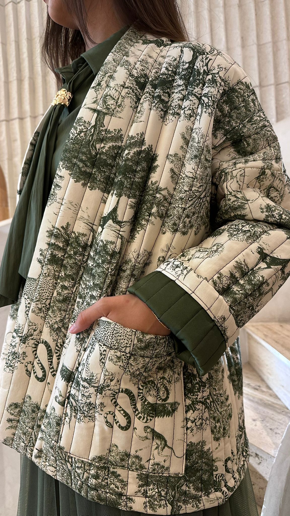 Quilted Matelasse Fabric Safari Printed Jacket with drop shoulder, front patch pockets and long wide sleeve