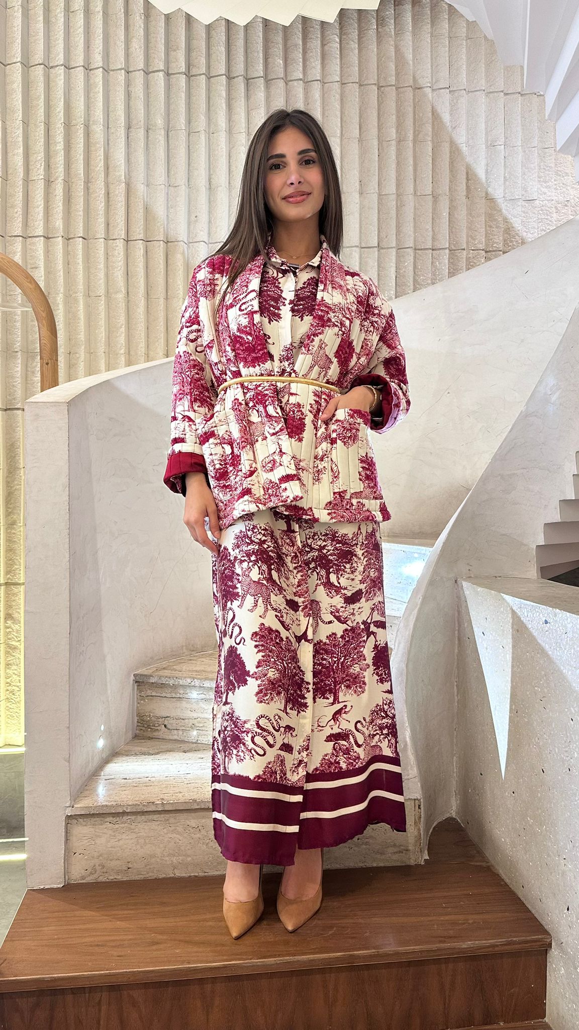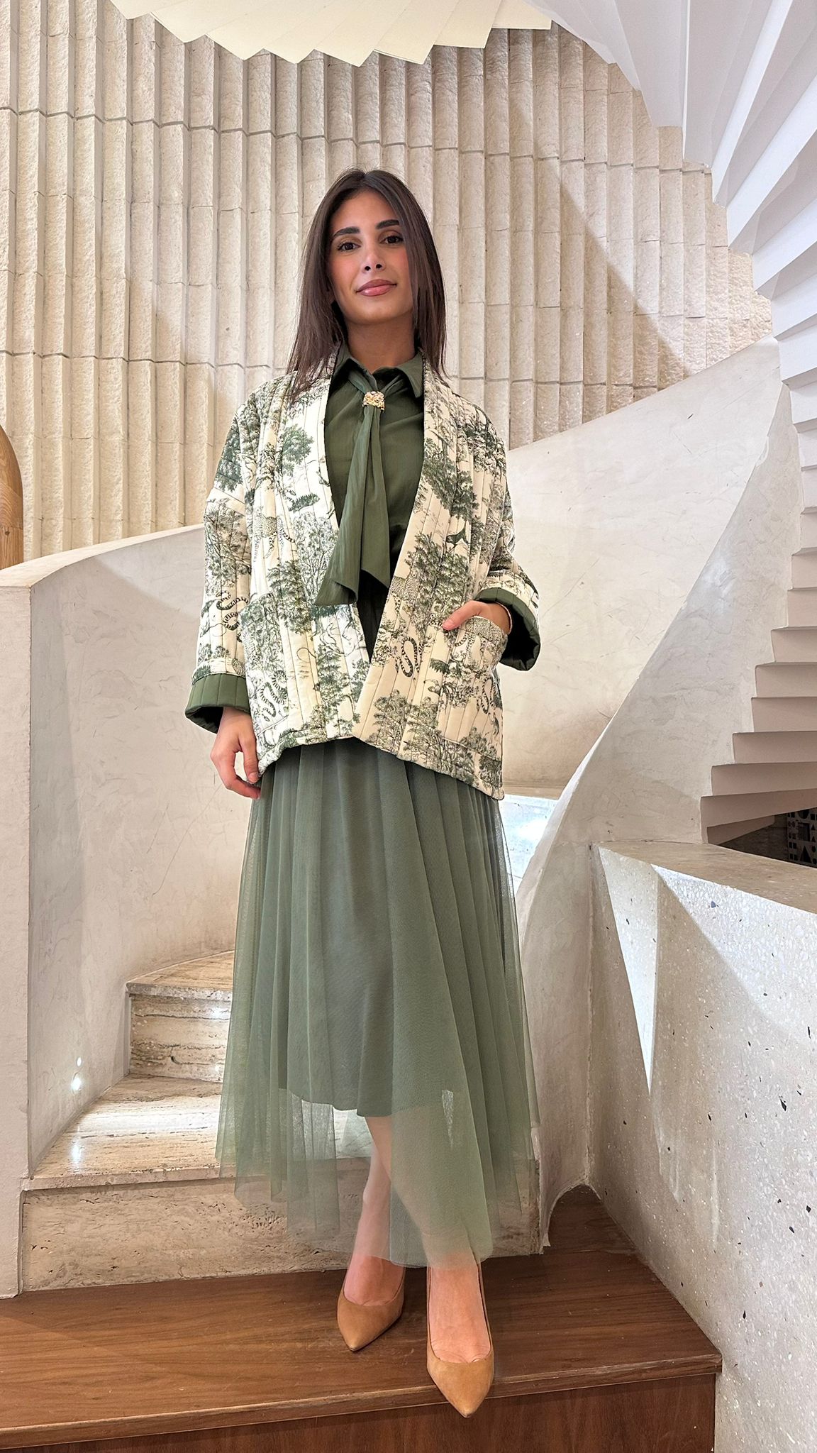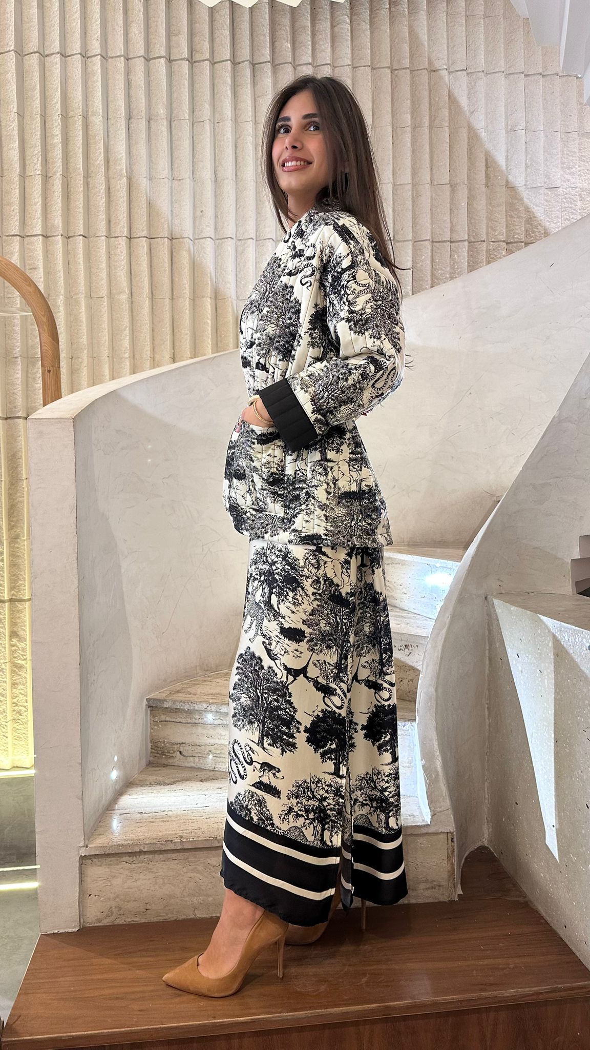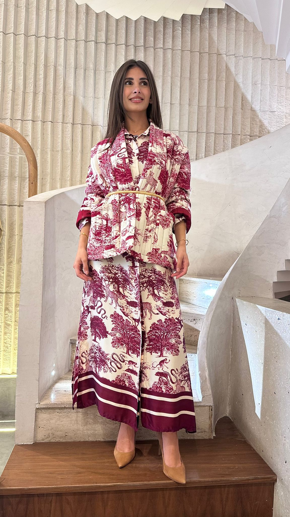 Quilted Matelasse Fabric Safari Printed Jacket with drop shoulder, front patch pockets and long wide sleeve