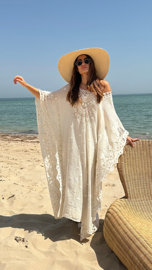 AWSS-215 OFF قفطان قطني طويل مطرز بالكروشيه