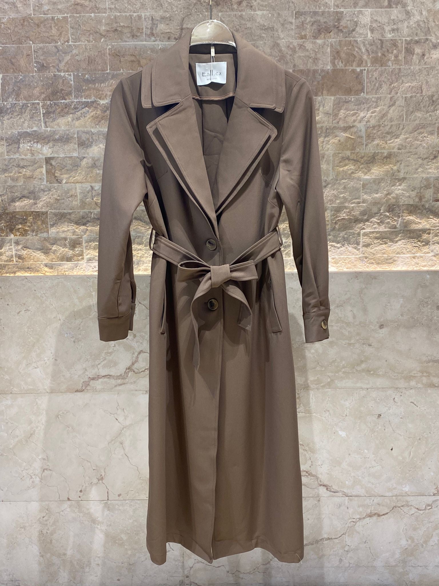 Buttoned Double Lapel Collared Belted Trench Coat with slip pockets and long sleeve with buttoned cuff