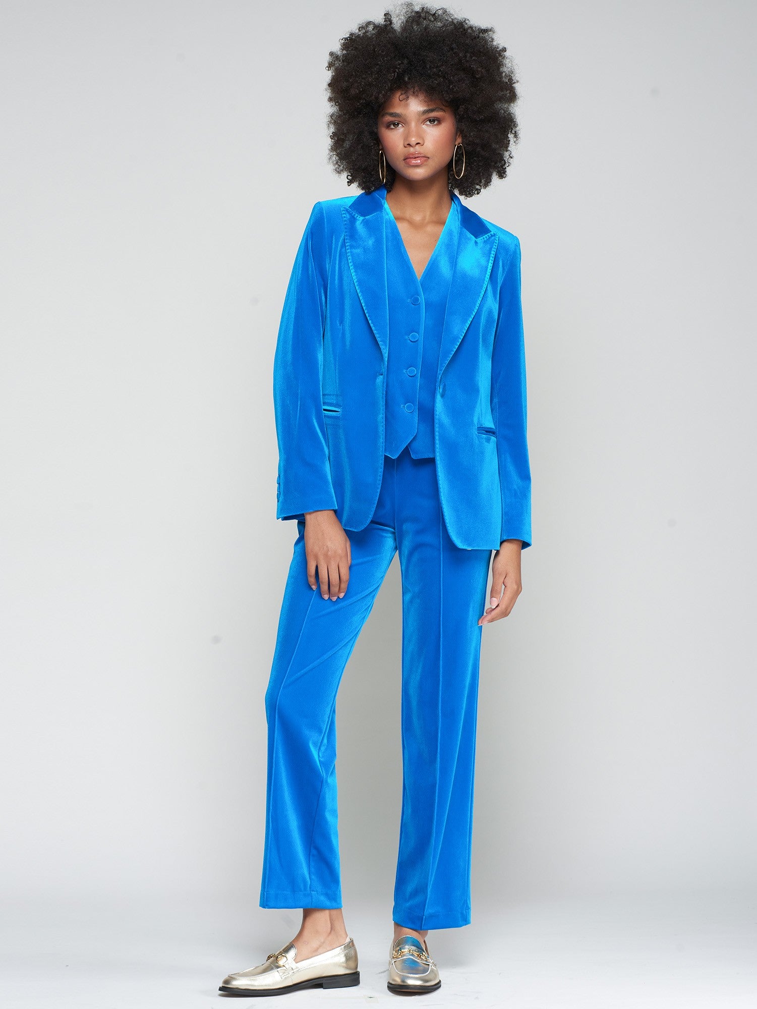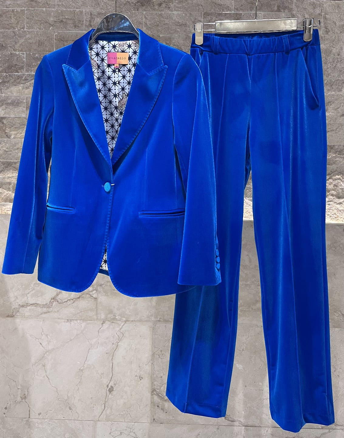 32870/32872 سترة مخملية ذات ياقة مطوية وزر واحد مع بنطلون مخملي متوسط الارتفاع