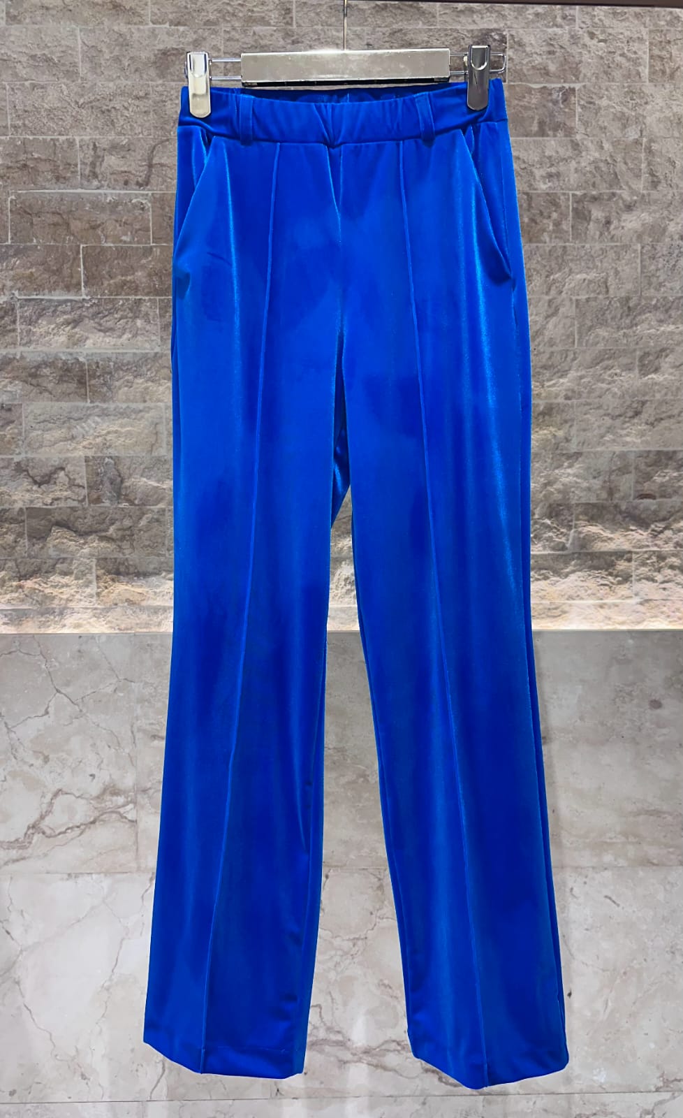 Classic Lapel Collared One Buttoned Velvet Jacket with welt pockets, slightly structured straight cut, printed inner lining and green contrast collar detail and long sleeve with buttoned details. Matching with Elastic Waistband Mid Rise Velvet Pants in straight cut, long leg, side pockets, belt loop and front stitched details