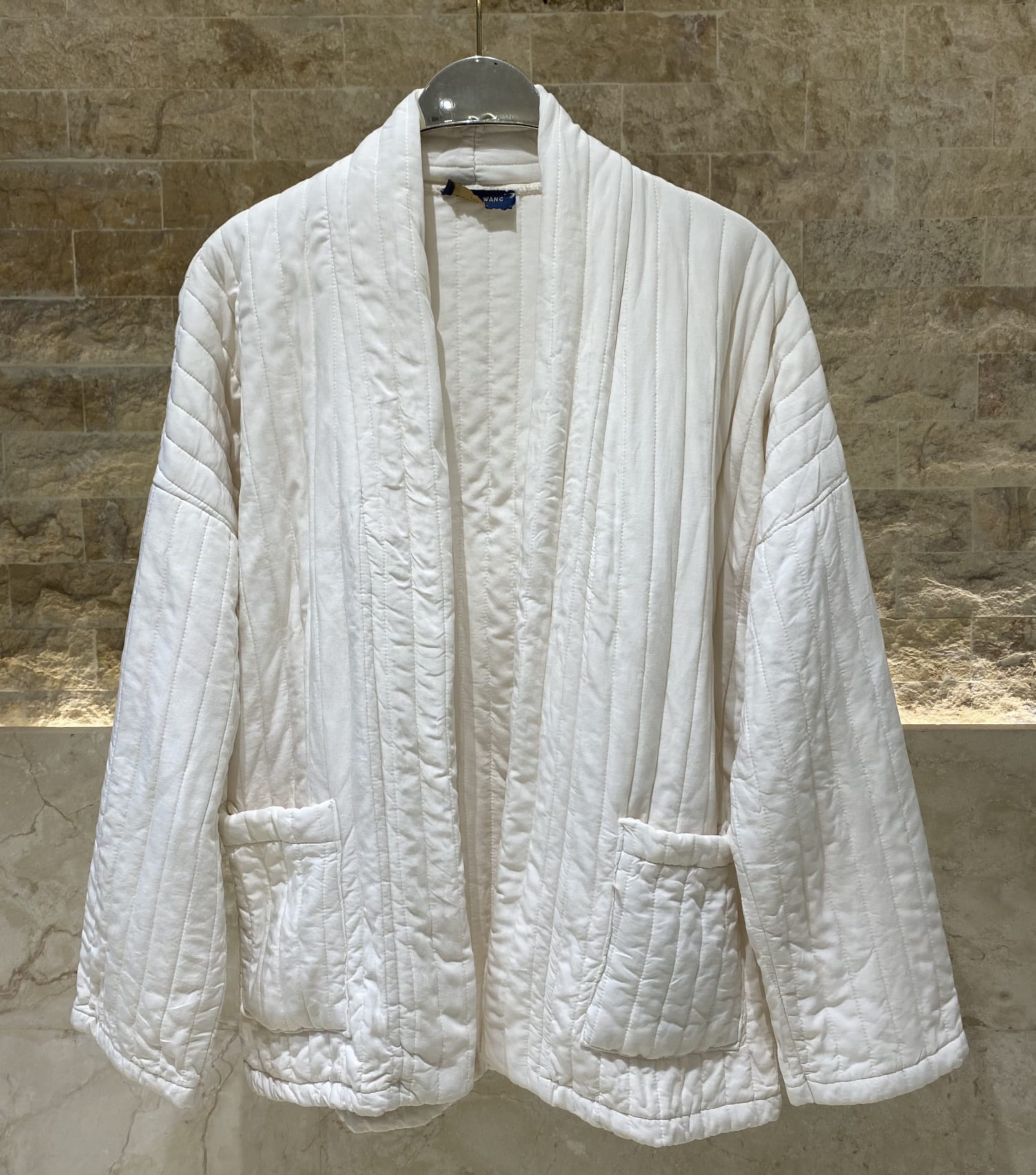 Open Front Quilted Matelasse Fabric Plain Jacket with drop shoulder, front patch pockets and long wide sleeve