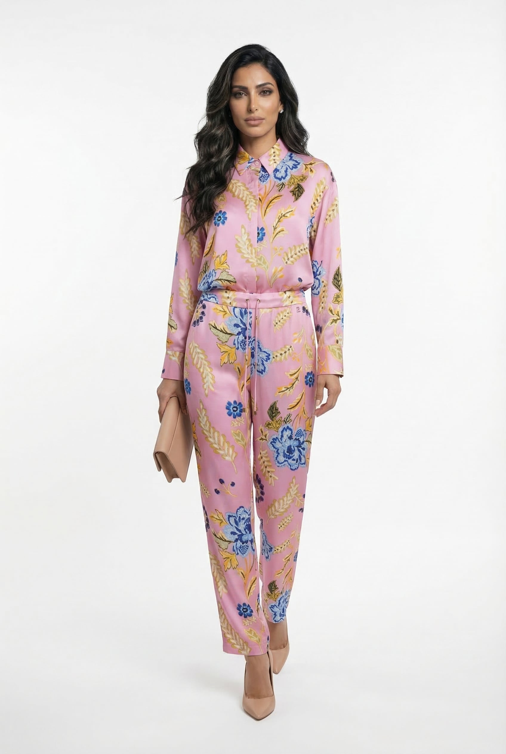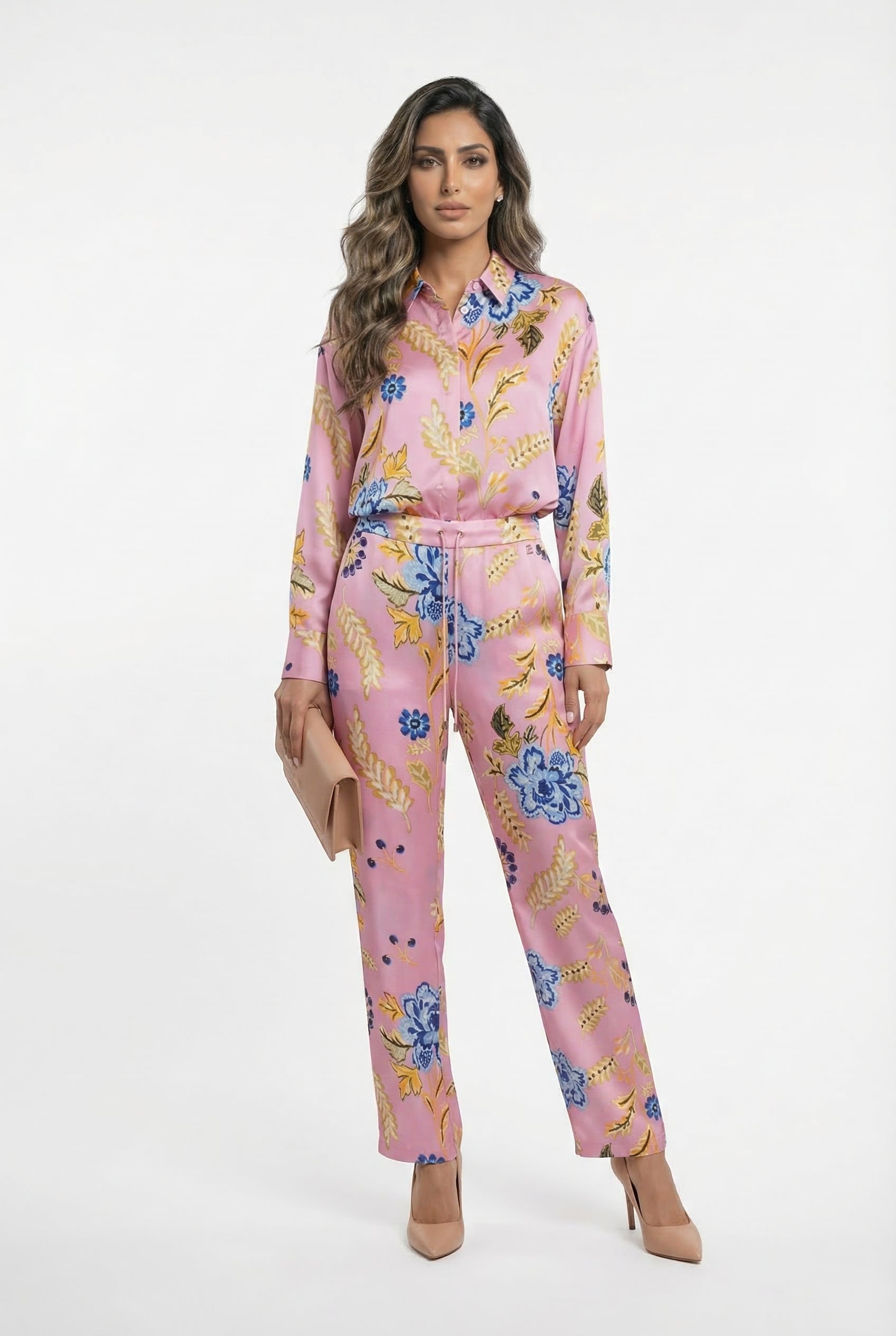 LS2614023 Floral Print Satin Slim Fit Joggers