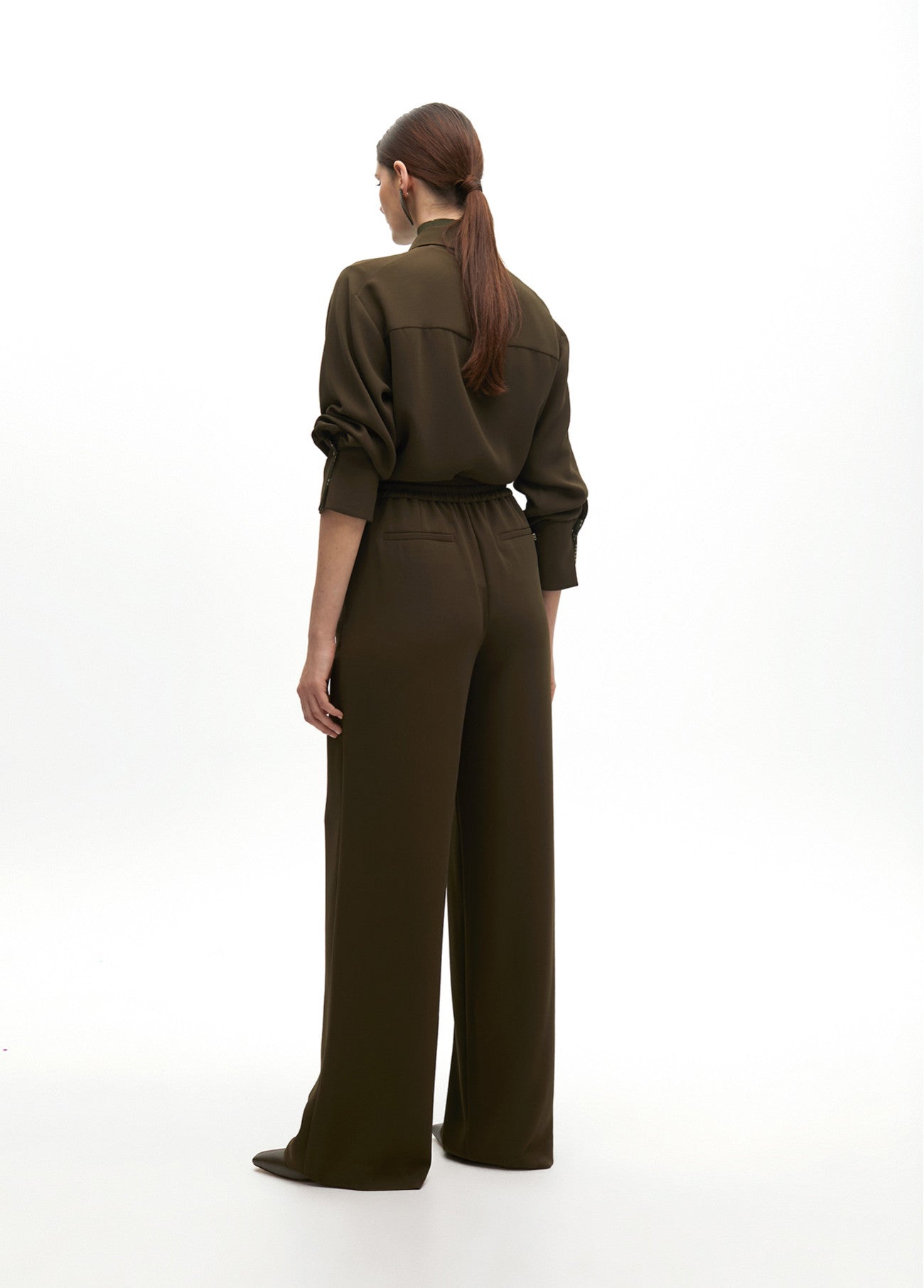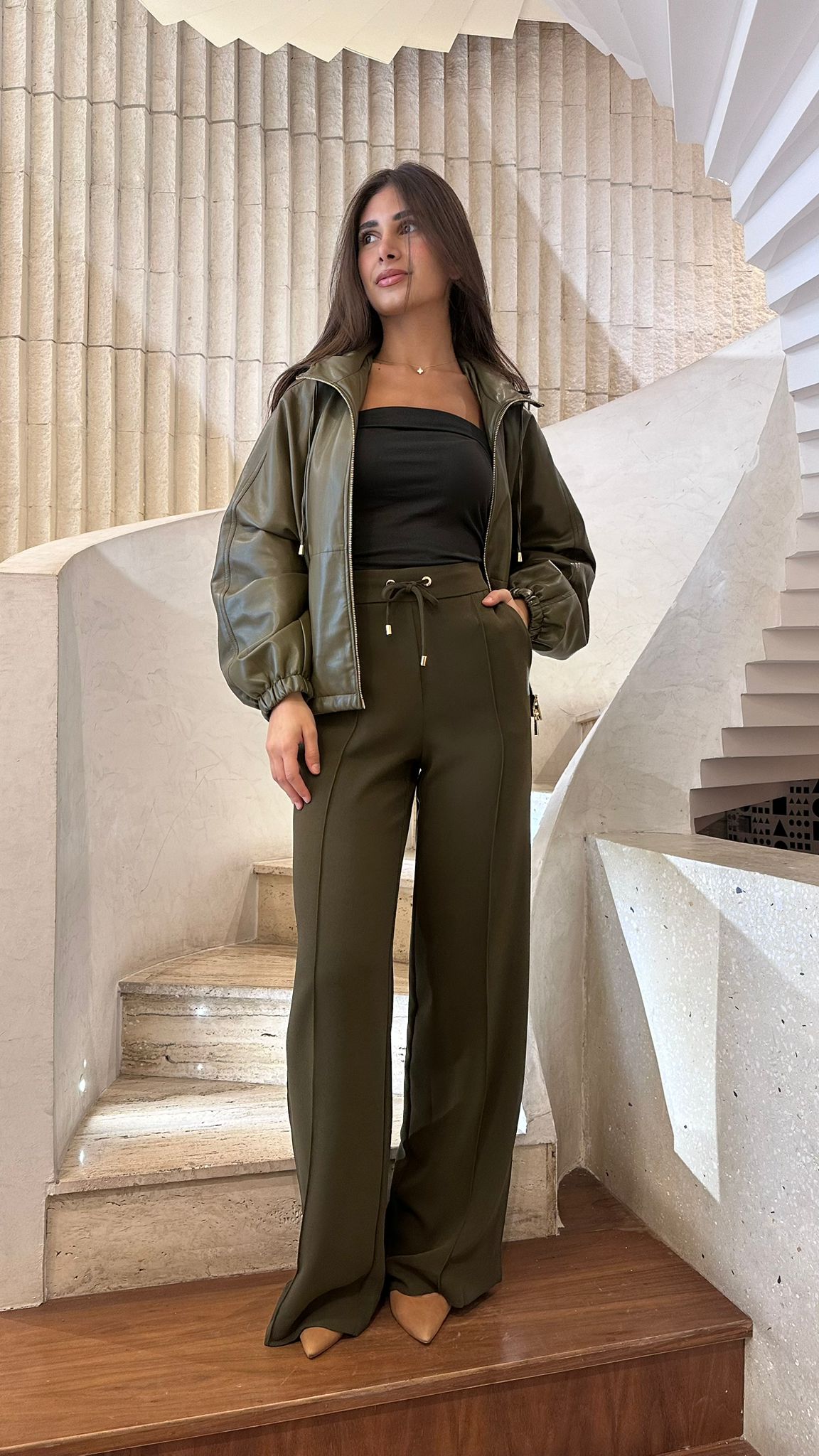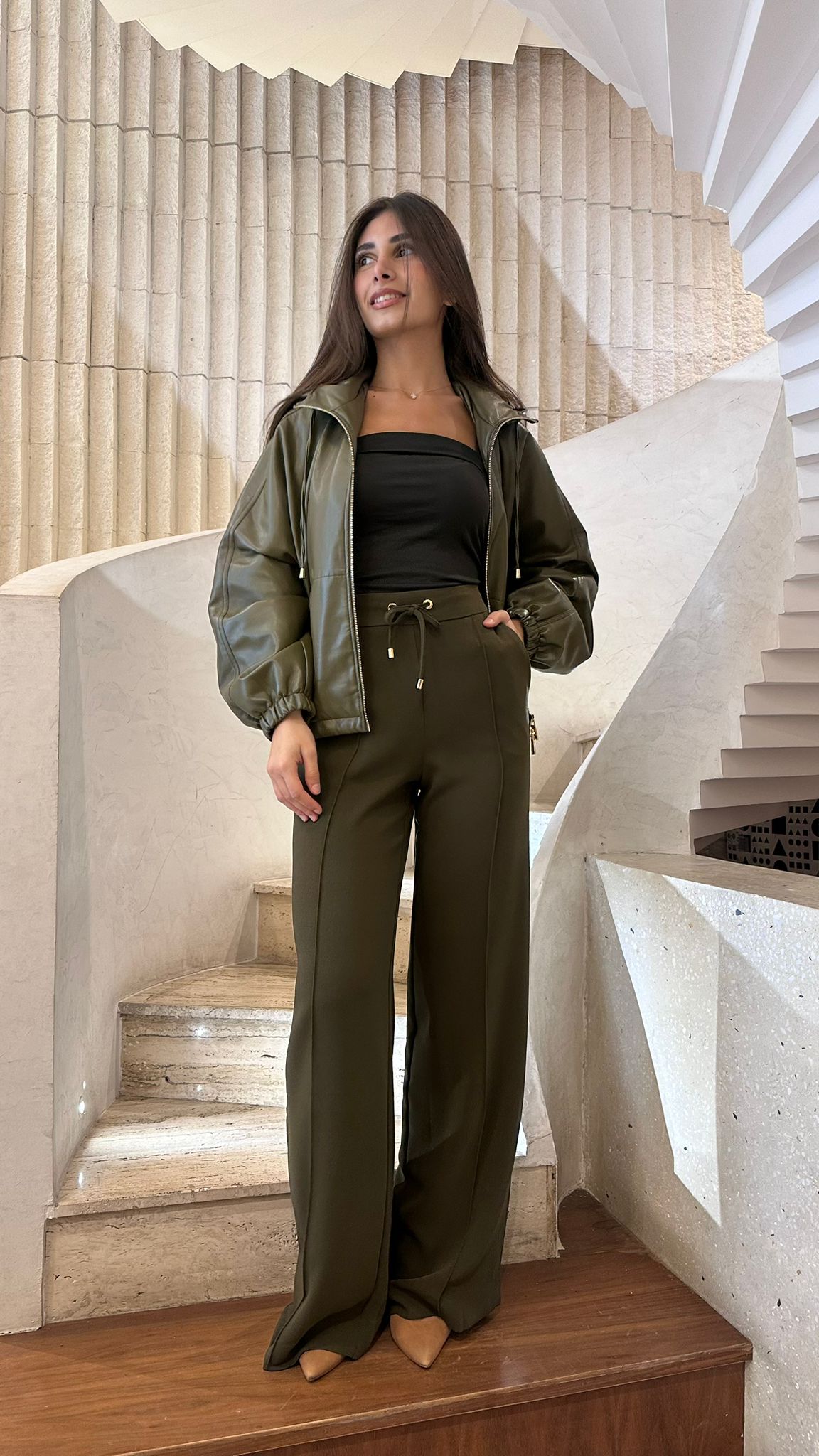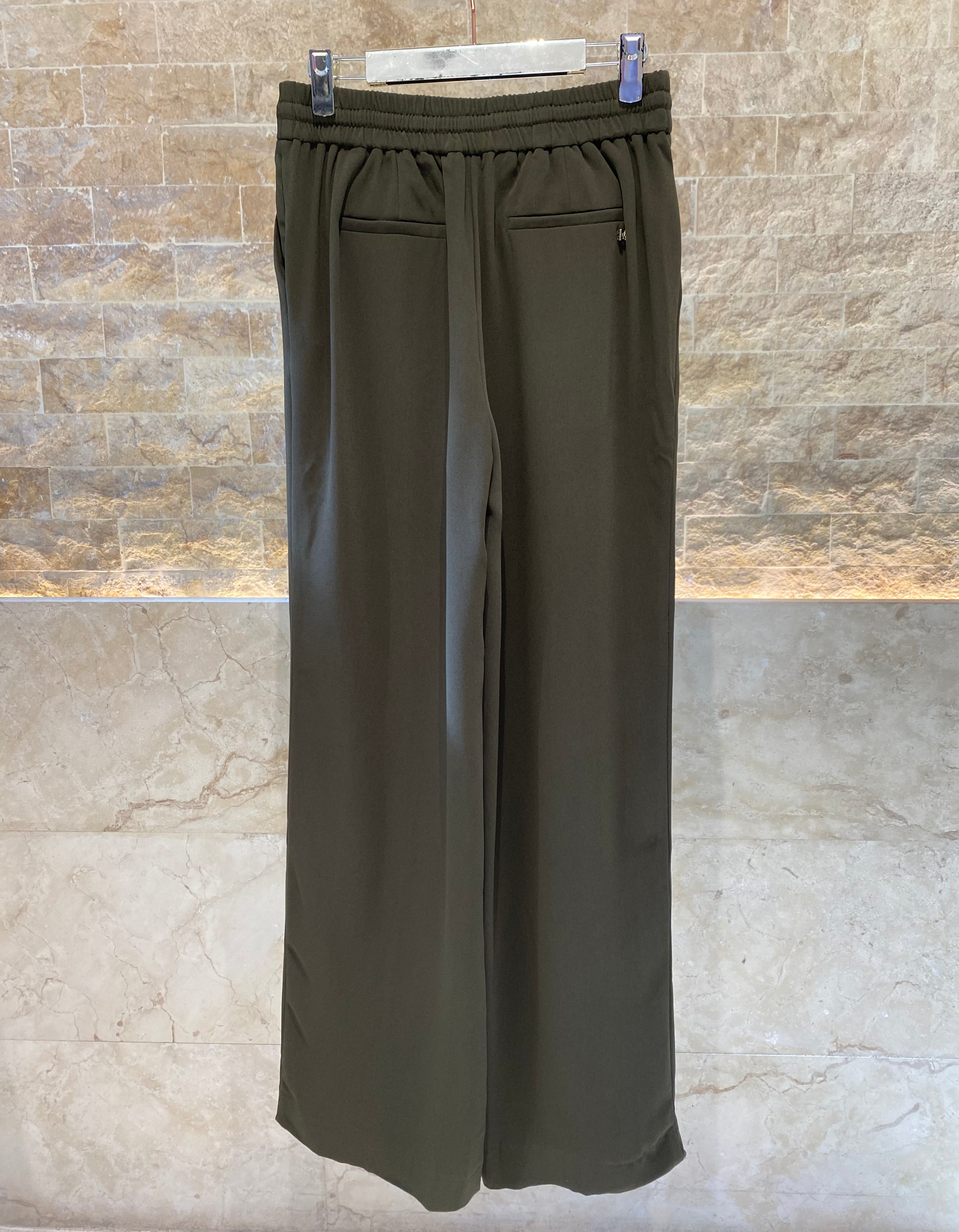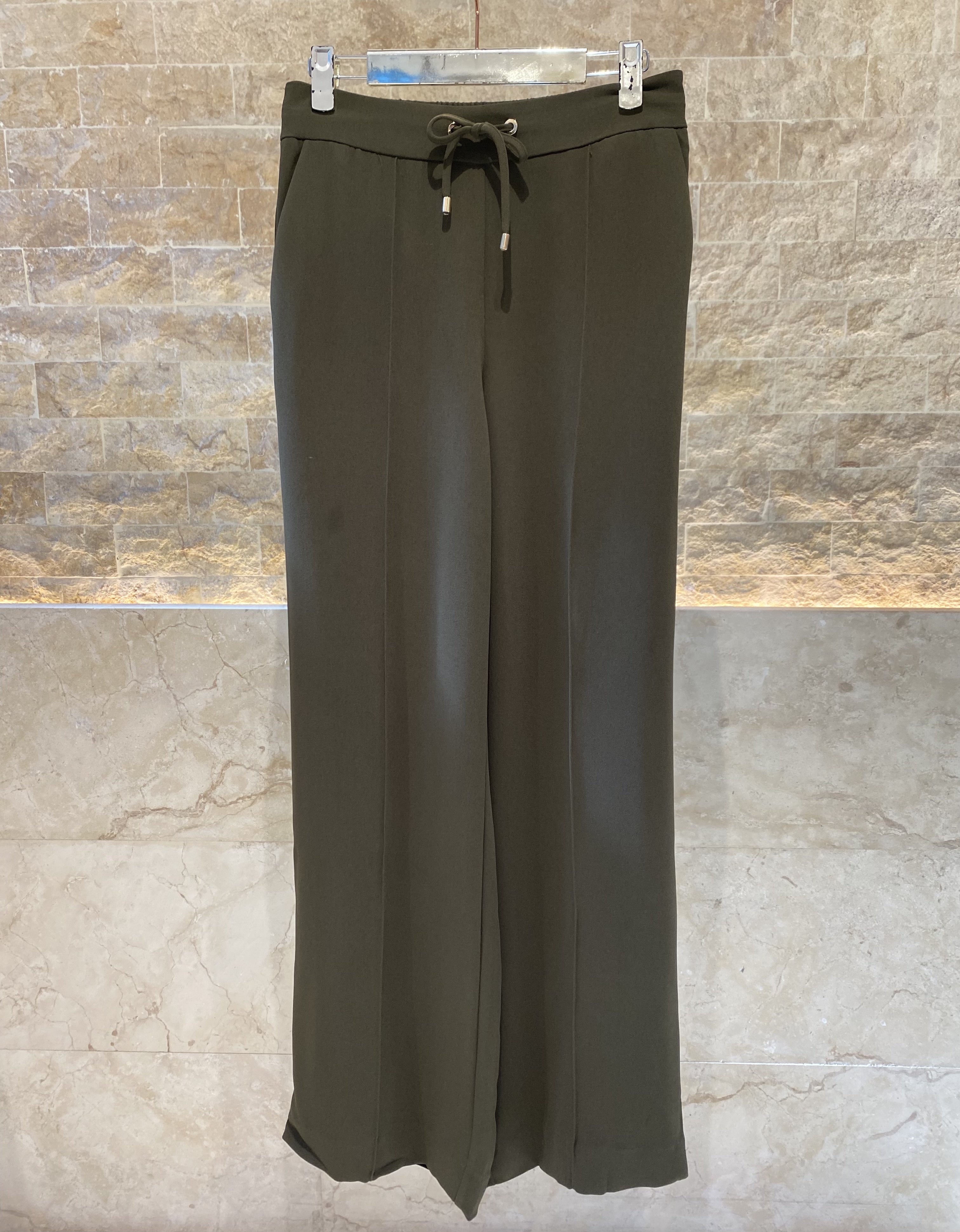 Adjustable Drawstring Straight Pants with central crease, side pockets, welt faux pockets and elastic back waistband