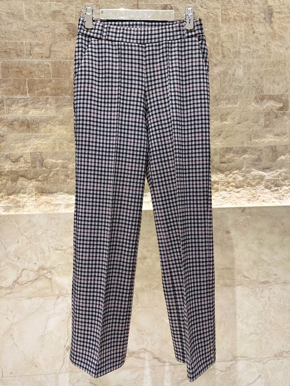 32698 بنطلون بنمط مربعات صغيرة مستقيم الساق