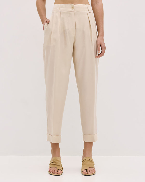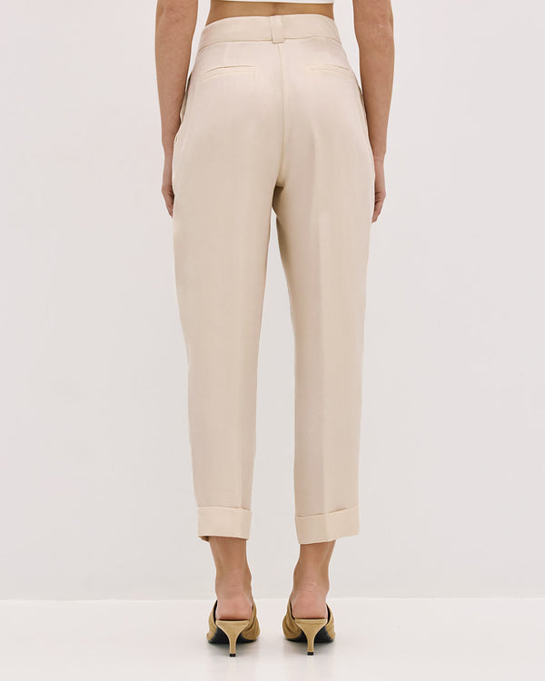 Buttoned Zippered High Waist Slouchy Pants with front pleats, side pockets, turn up hemline and decorative welts pocket at the back