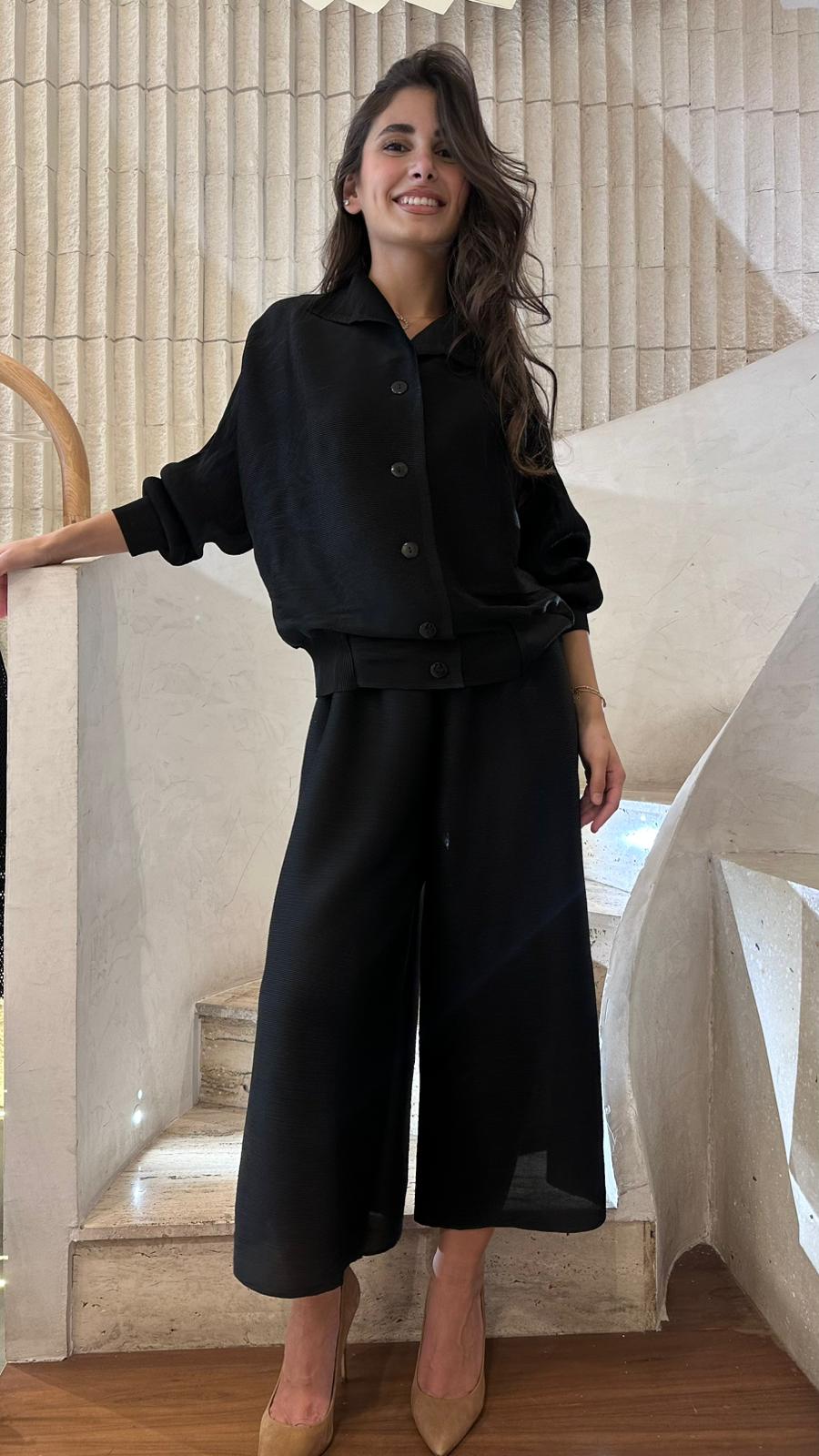 Elastic Waistband Wide Leg Plisse Culottes Pant