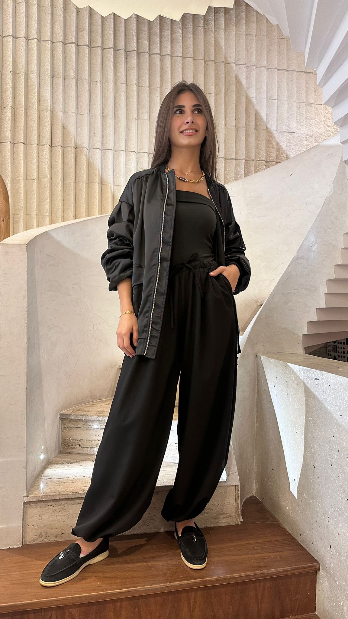 Elastic Waistband Wide Pants with drawstring waist details, side slip pockets and elastic hem cuff details