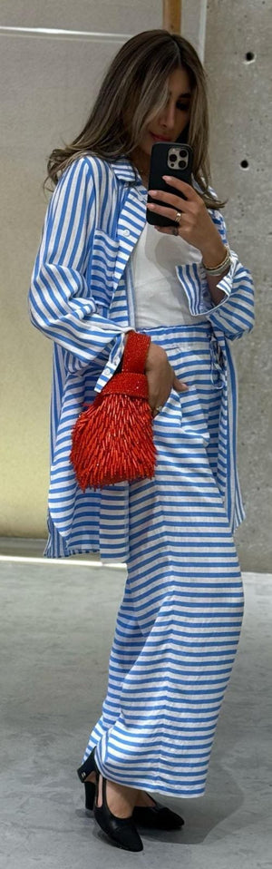2514009 بنطال واسع الساقين مخطط باتجاهين