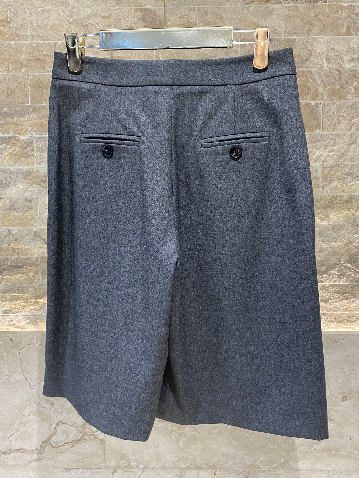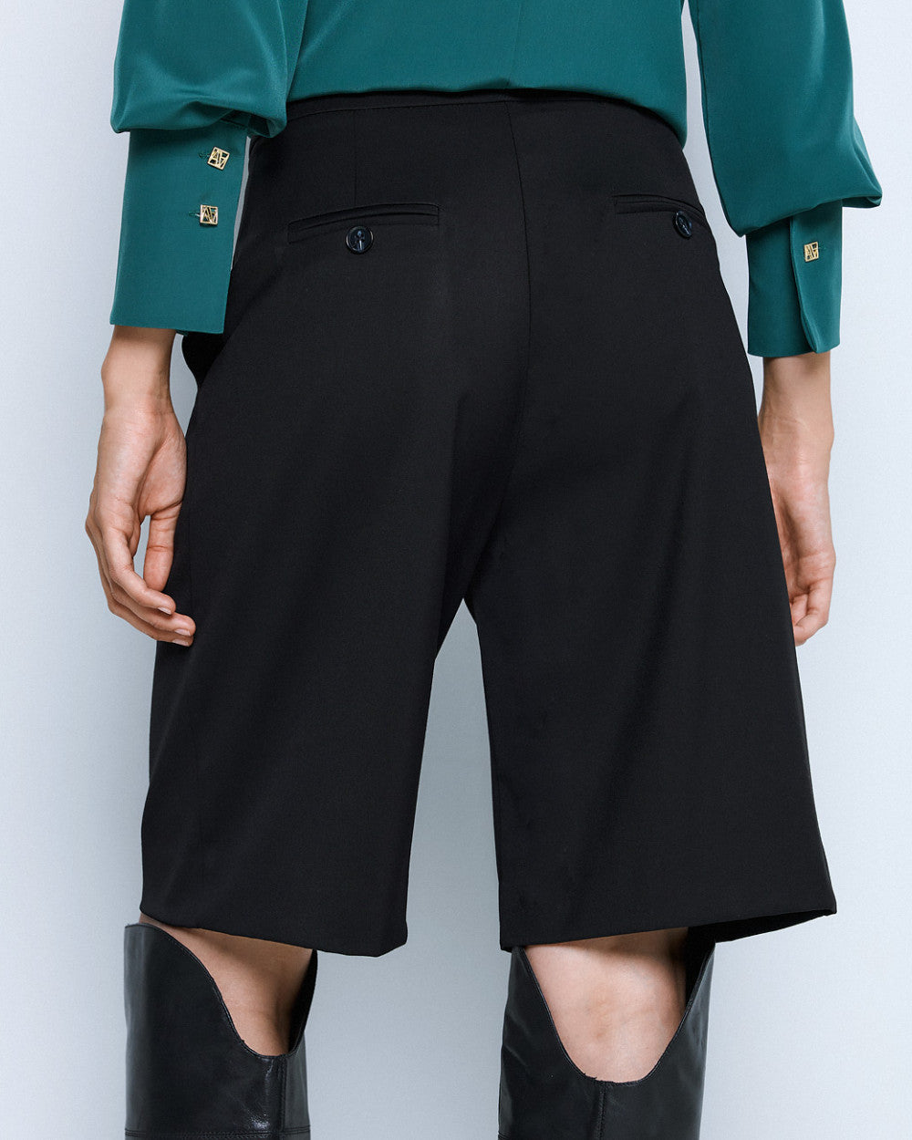 Zippered Hook and Bar Closure High Waist Pleated Bermuda Short with side pockets and decorative back welt pockets detailed