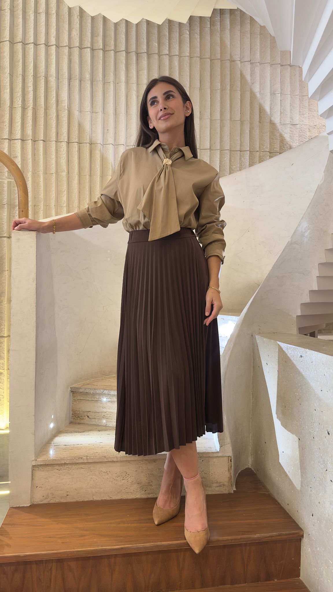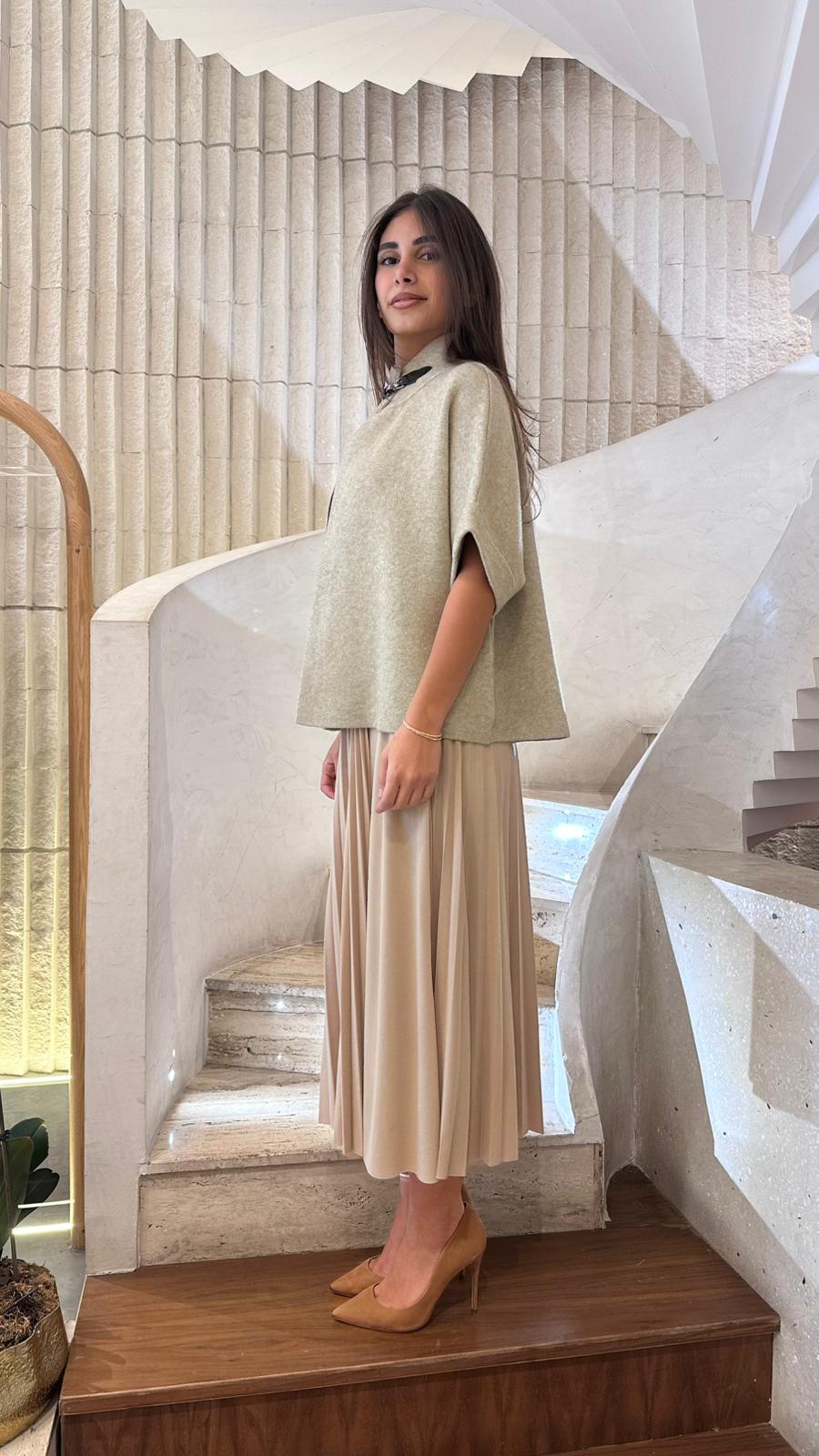 MF53075 تنورة مطاطية مطاطية متداخلة مع بطيات