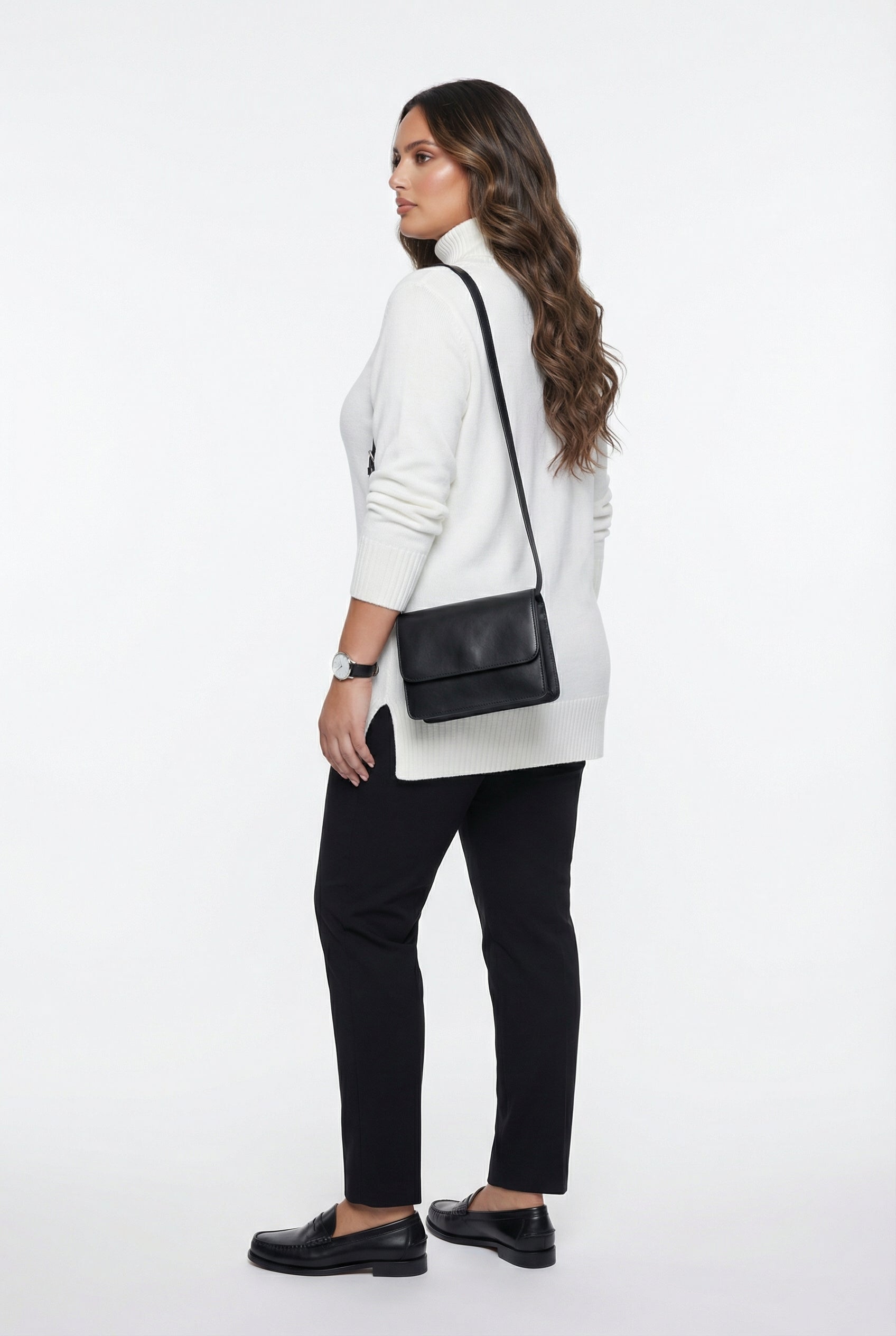 The 23662 Collo Oversized Sweater Top is designed for comfort and style. Featuring a high rib neckline and rib hem, this knit oversized sweater is perfect for layering. Its long sleeves with rib cuffs add to the cozy feel, making it an ideal choice for both casual and smart-casual outfits. Pair it effortlessly with tailored pants and loafers for a polished look.