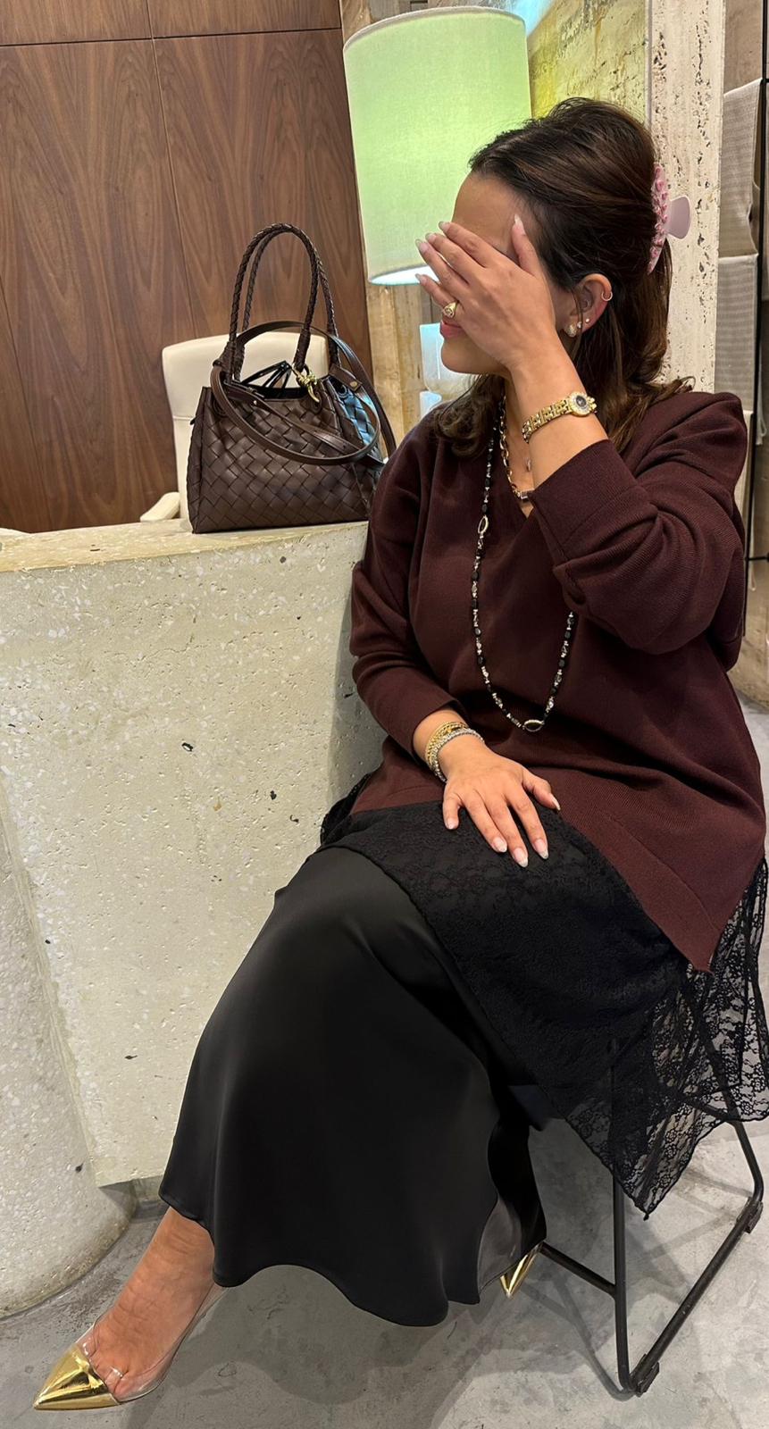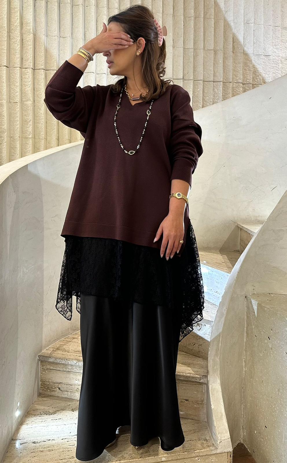 8401.5032 Rib Knit Lace Tunic Top بلوزة تونيك دانتيل محبوكة