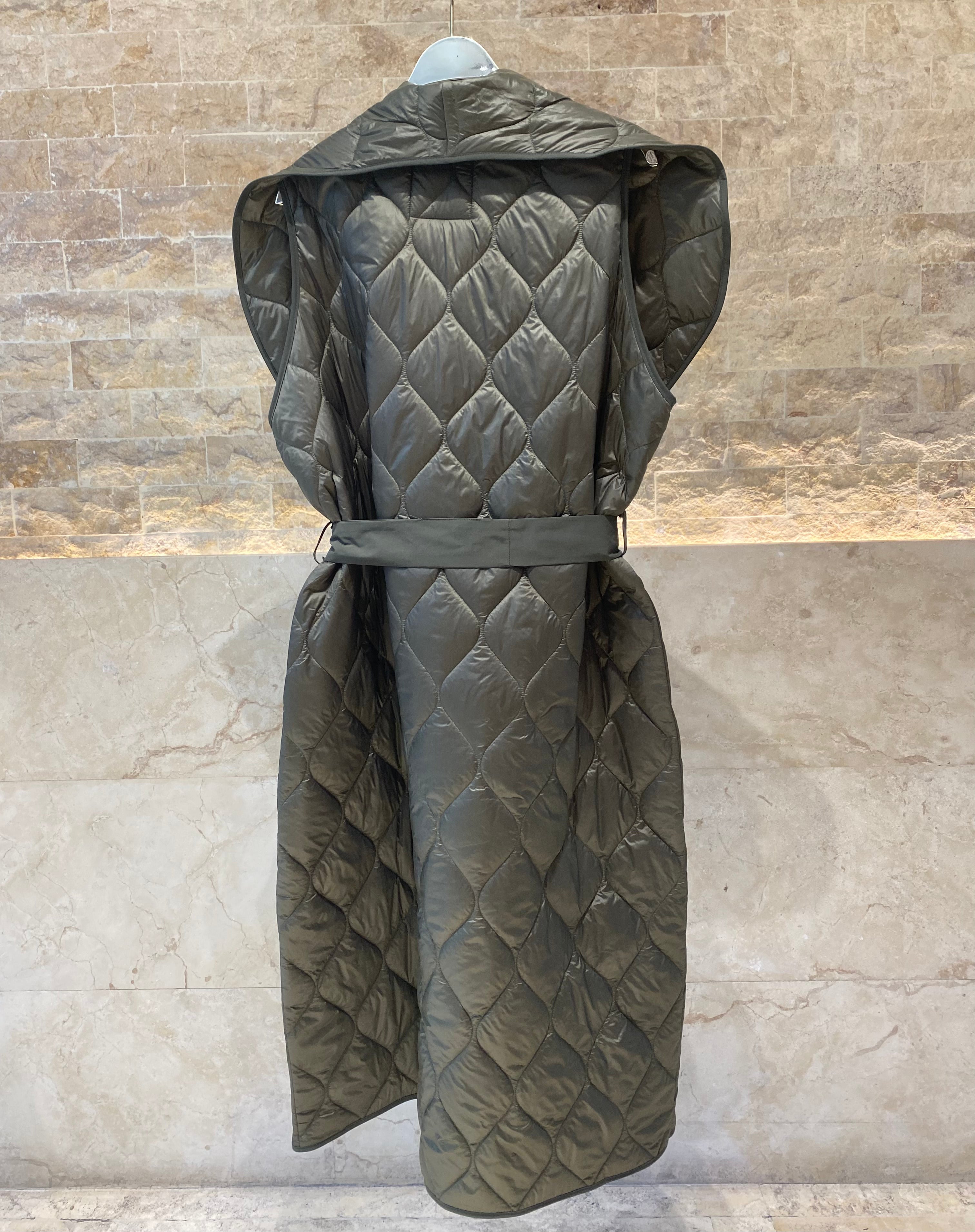 Wide Collared Puffer Vest with removable belt and front patch pockets