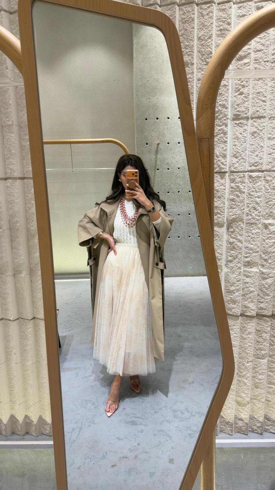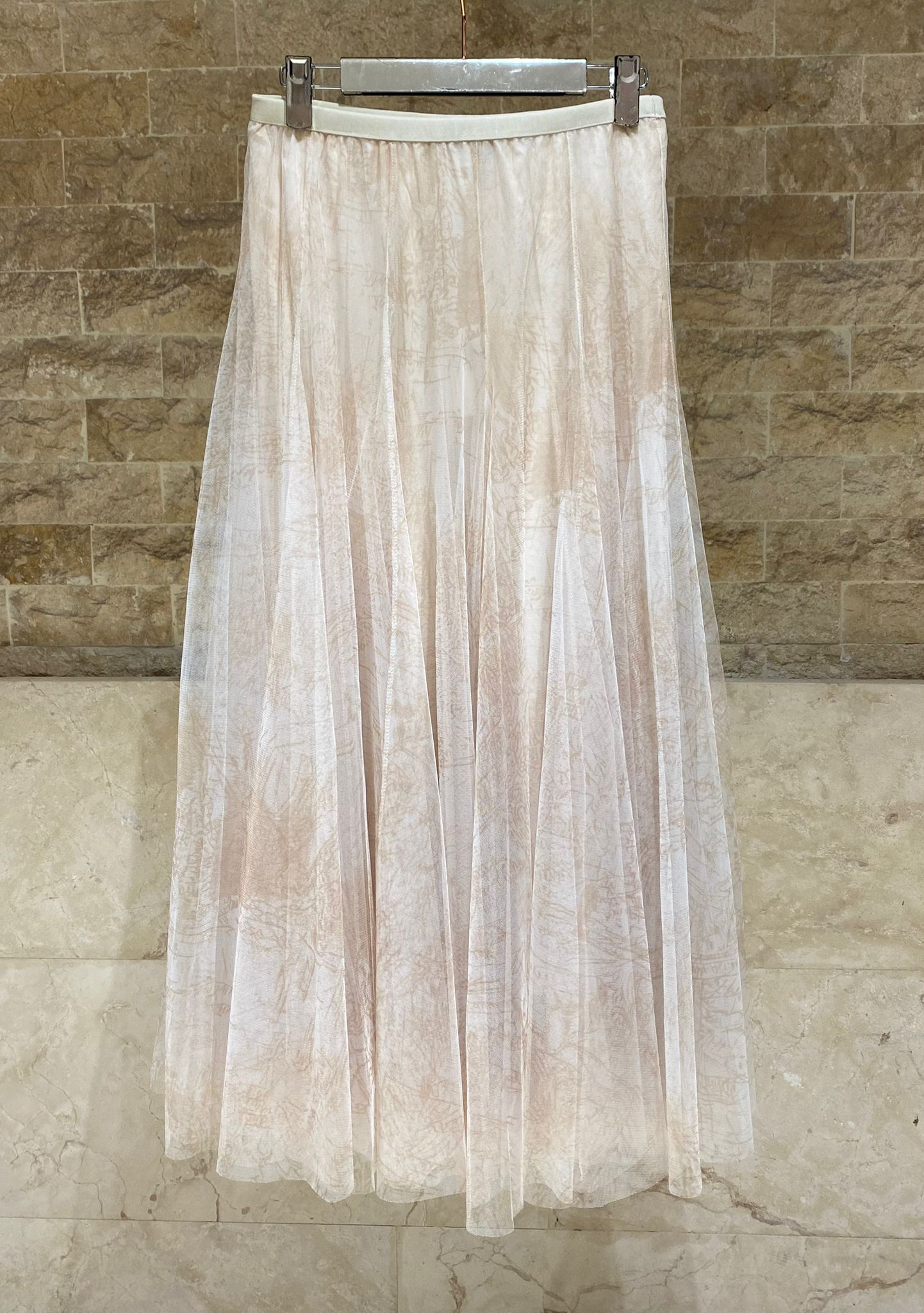 Elastic Waistband Long Tulle Skirt with abstract print details