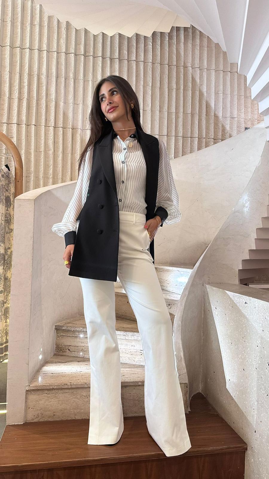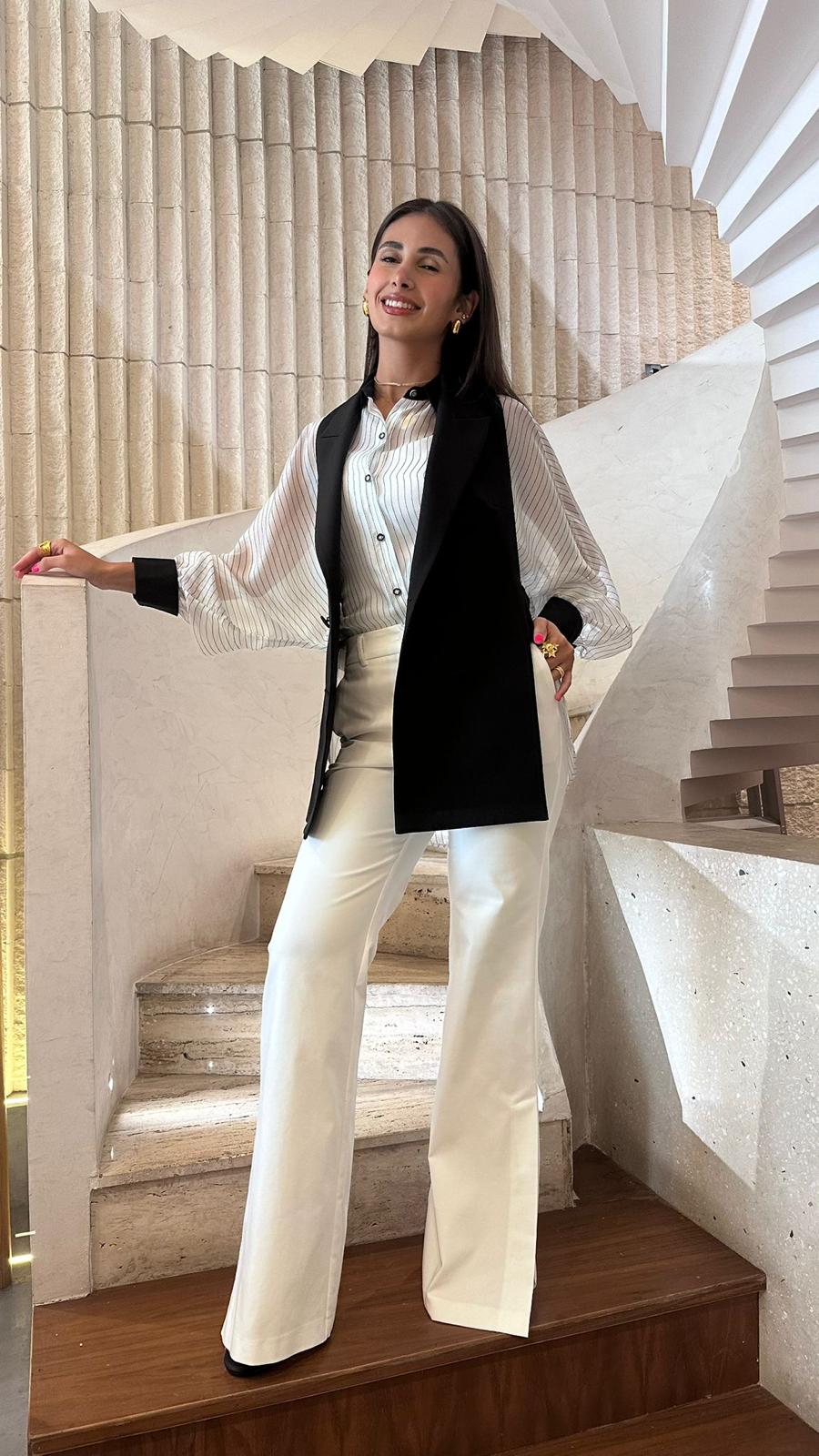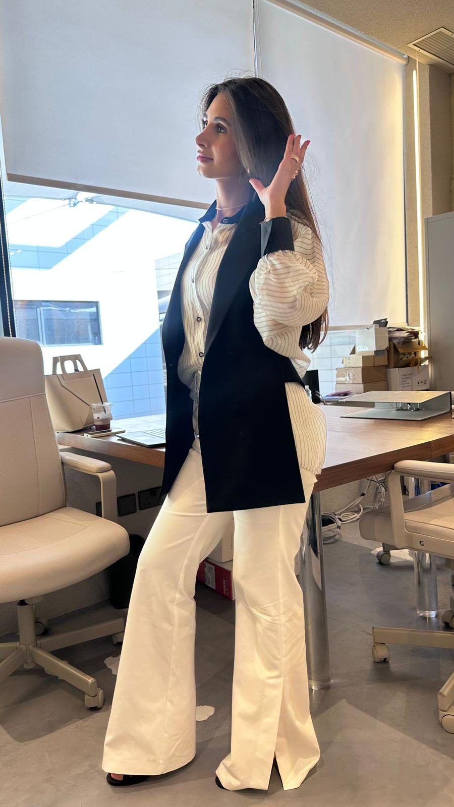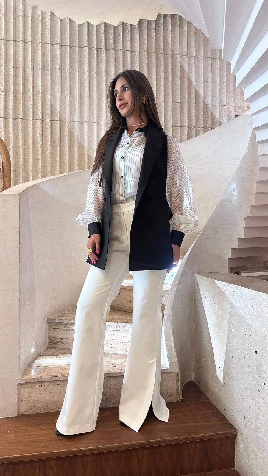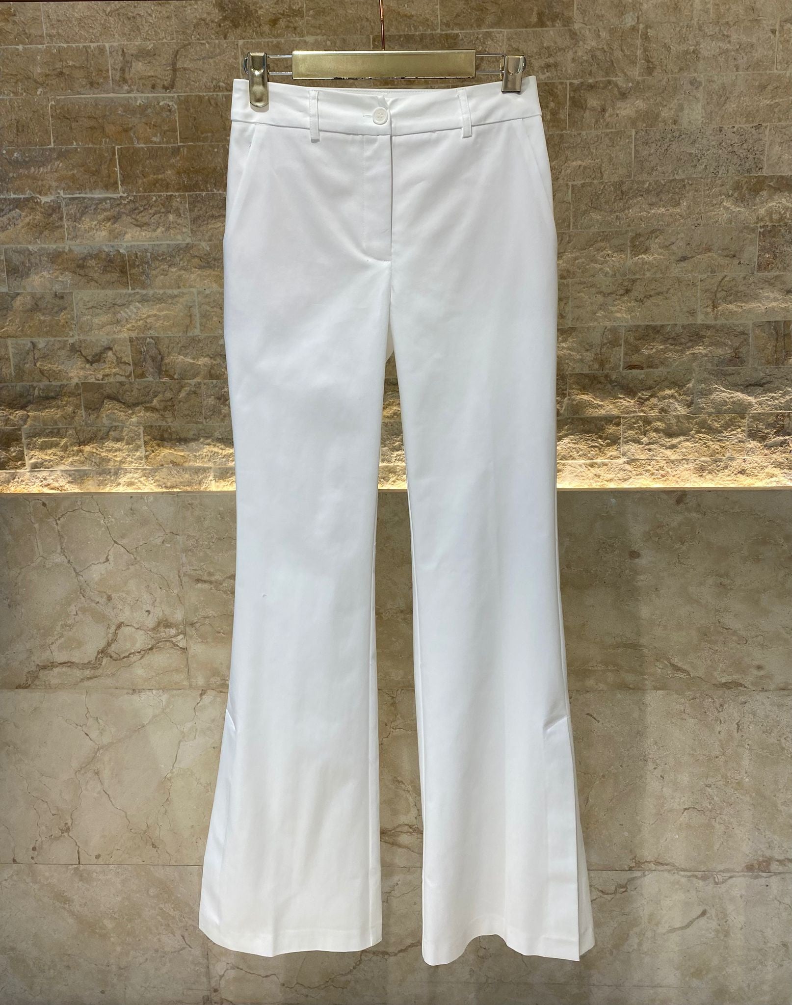 Buttoned Zippered Slightly Stretched Fabric Flare Pants with side pockets, side slits, loop waist and welts pocket at the back