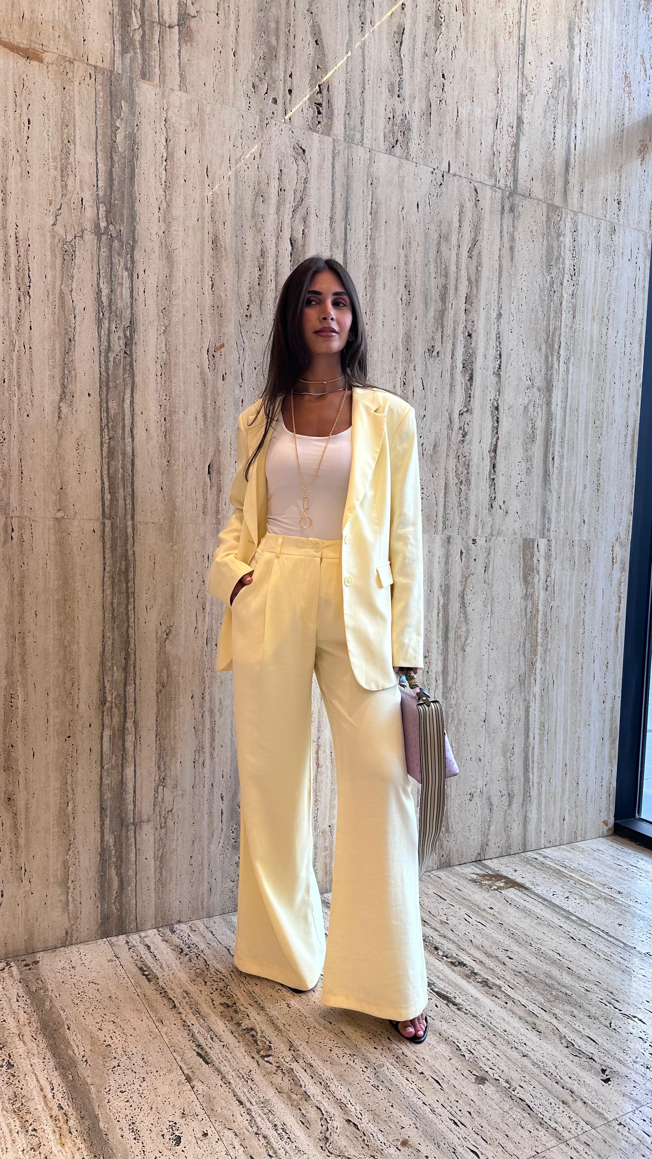 Zippered Buttoned High Waist Wide Leg Pants with front pleats, belt loop, side pockets and back welt pocket details
