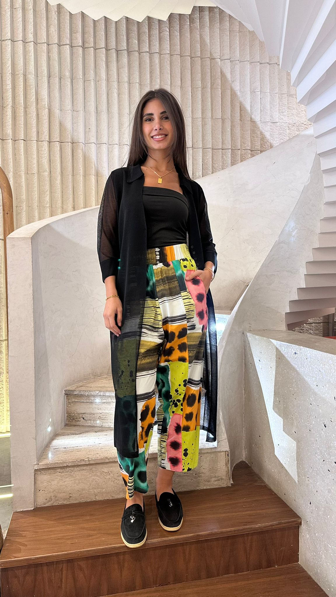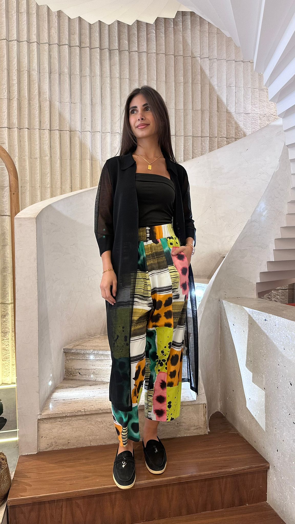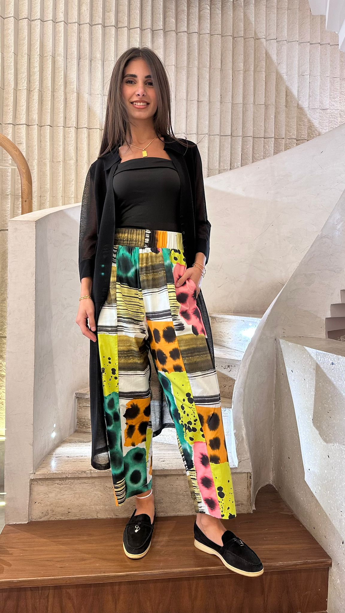 Side Zippered Elastic Waistband High Waist Patterned Cropped Pants with side slip pockets and back patch pocket details