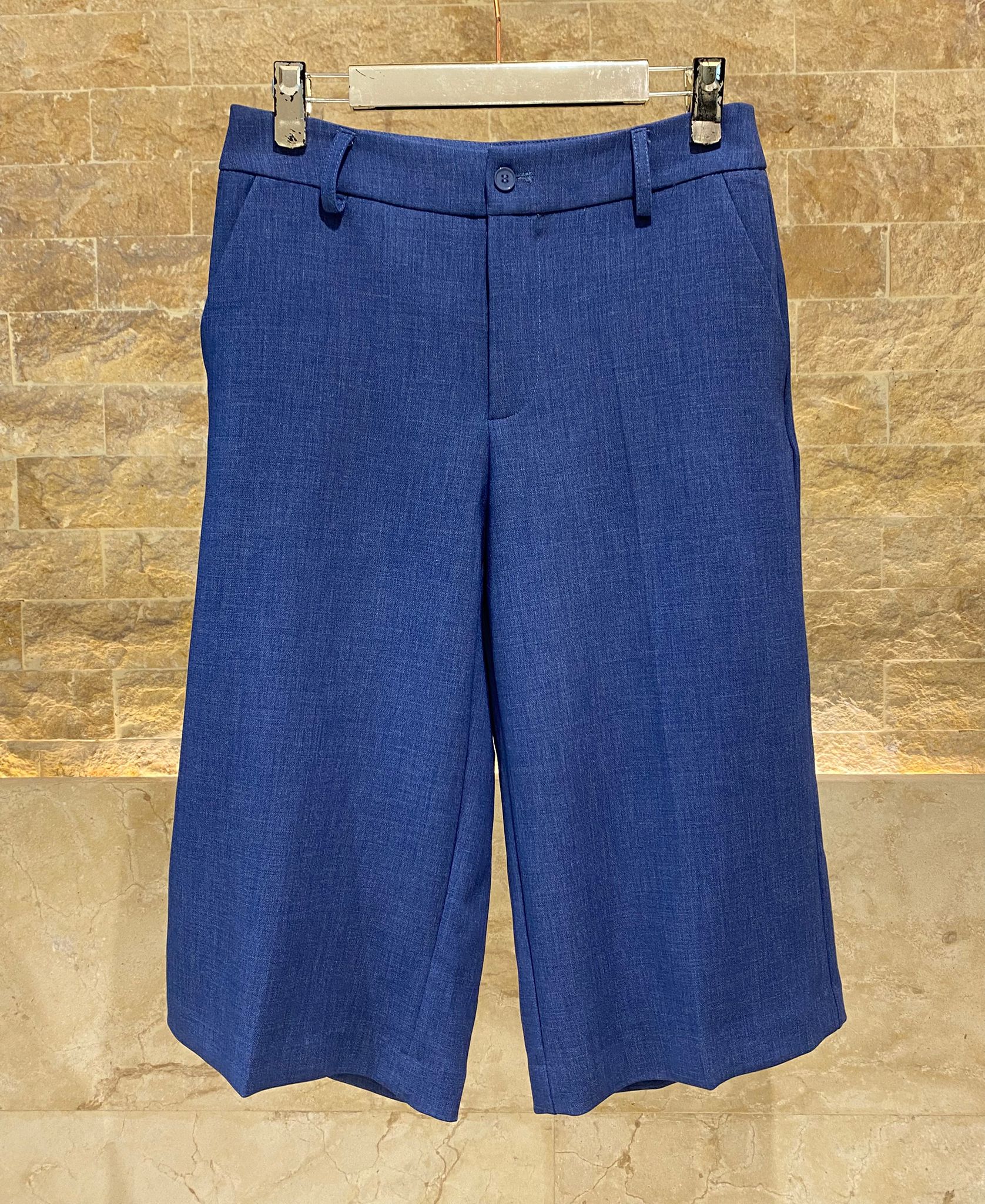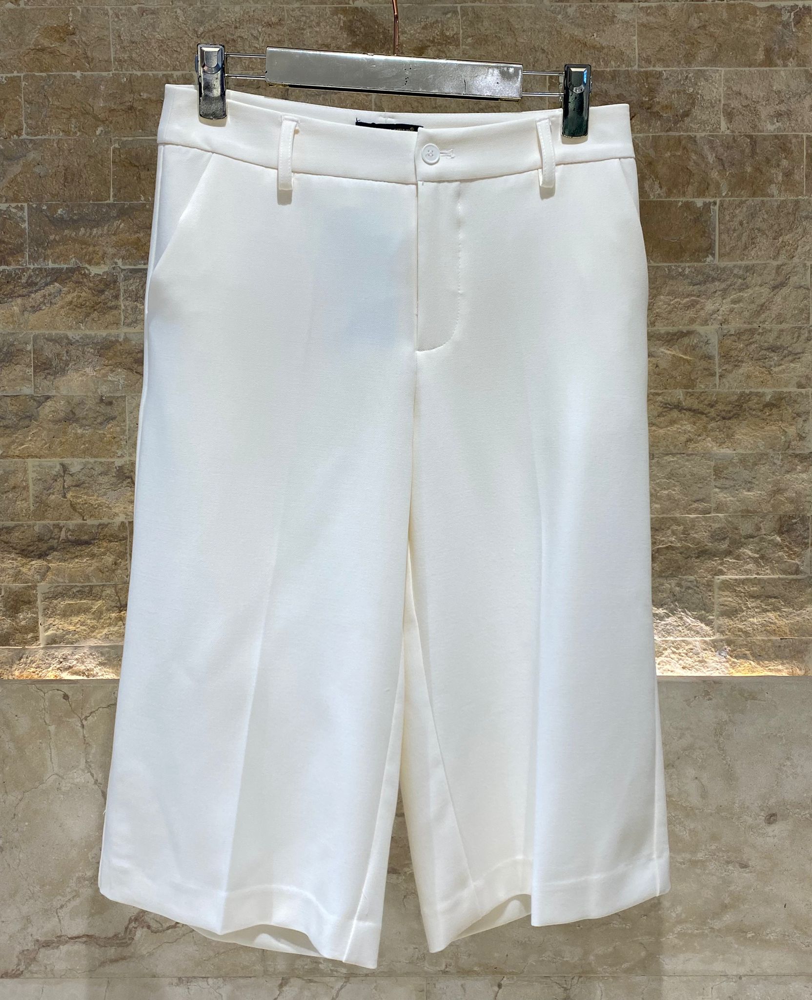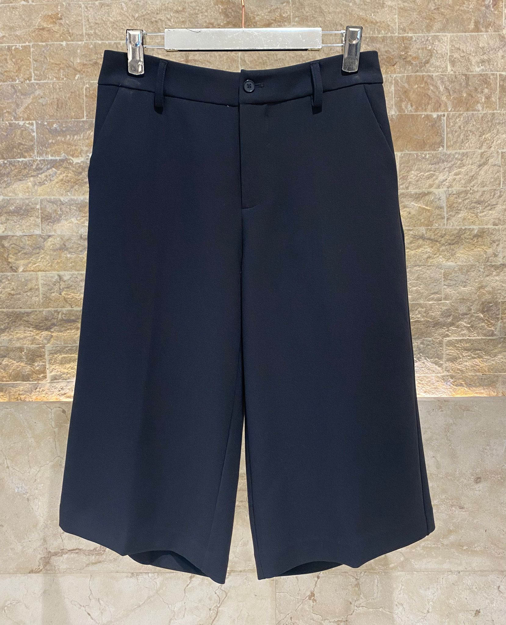 Notched Lapel Two Buttoned Oversized Tailored Vest with flap pockets and size slit with matching Buttoned Zippered Wide Leg High Rise Bermuda Short with side pockets and back welt faux pocket details
