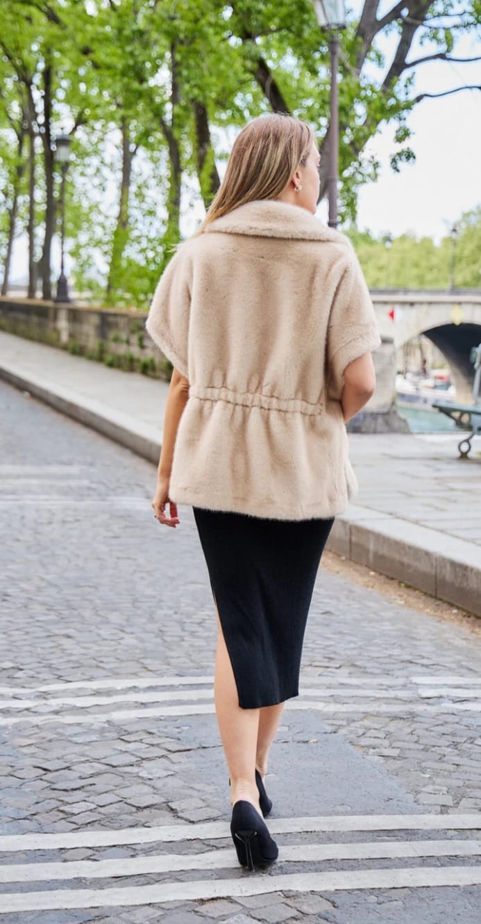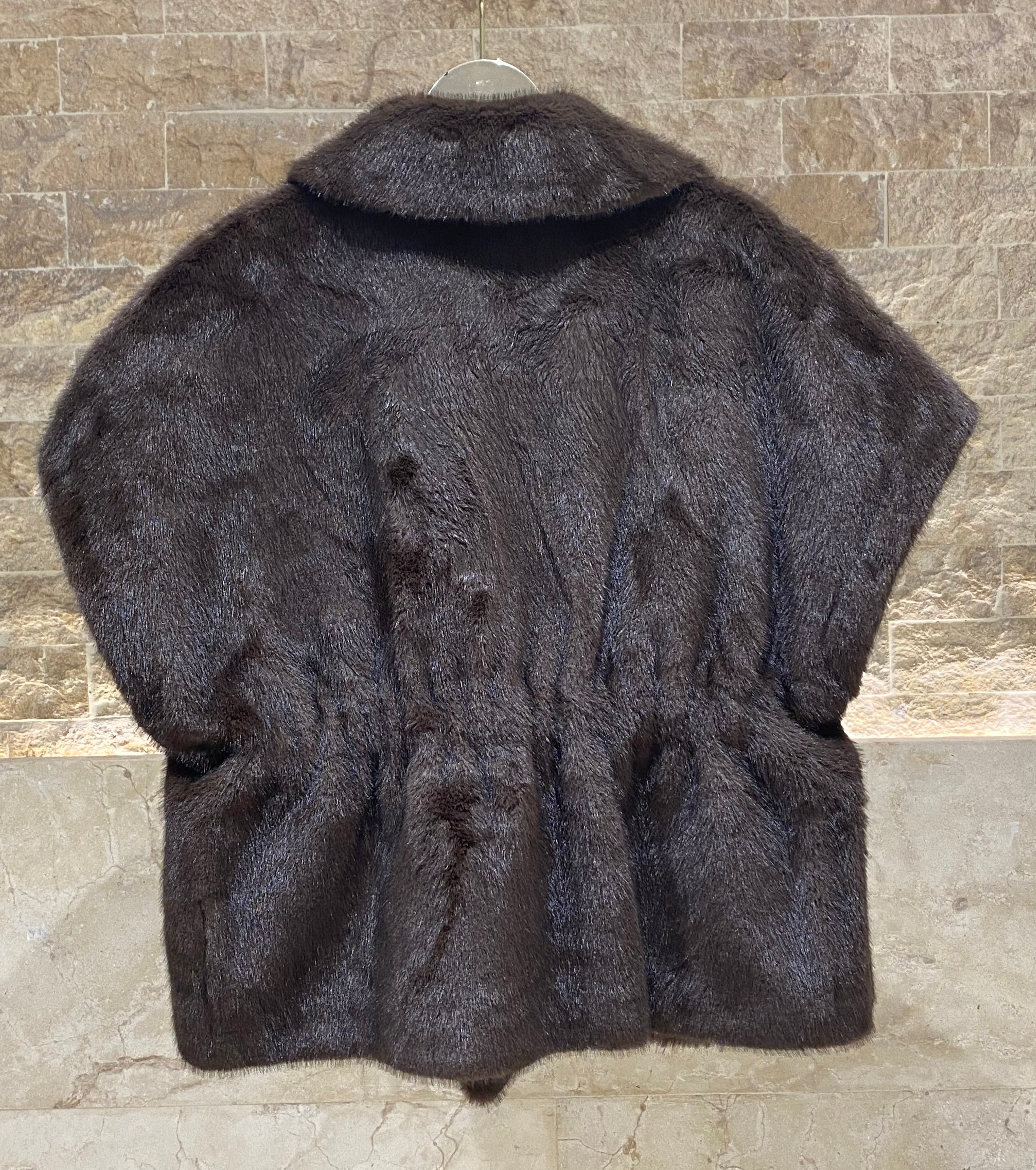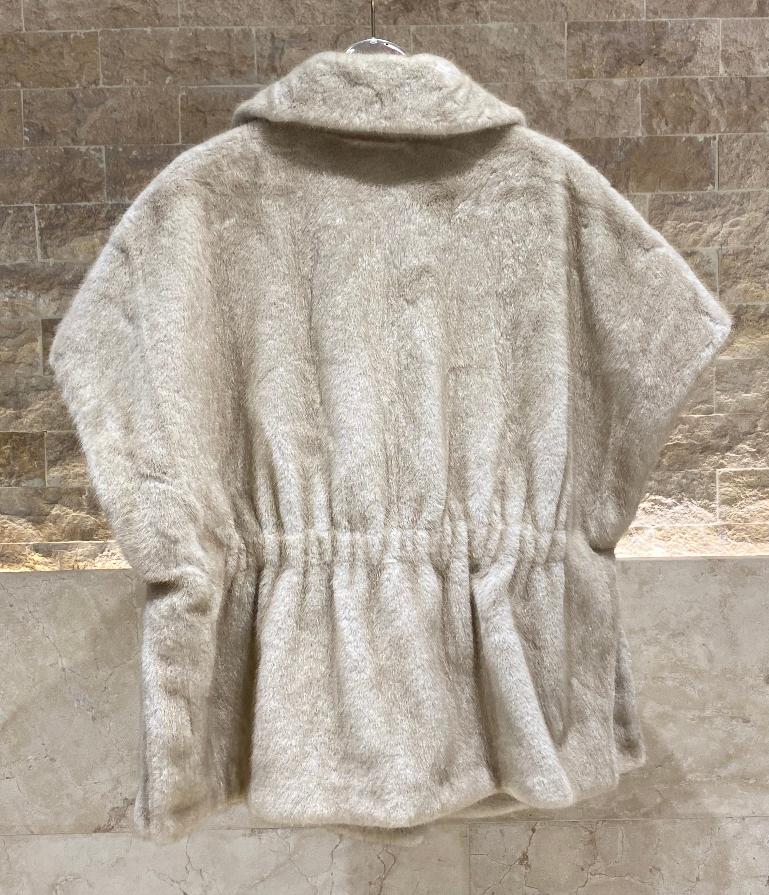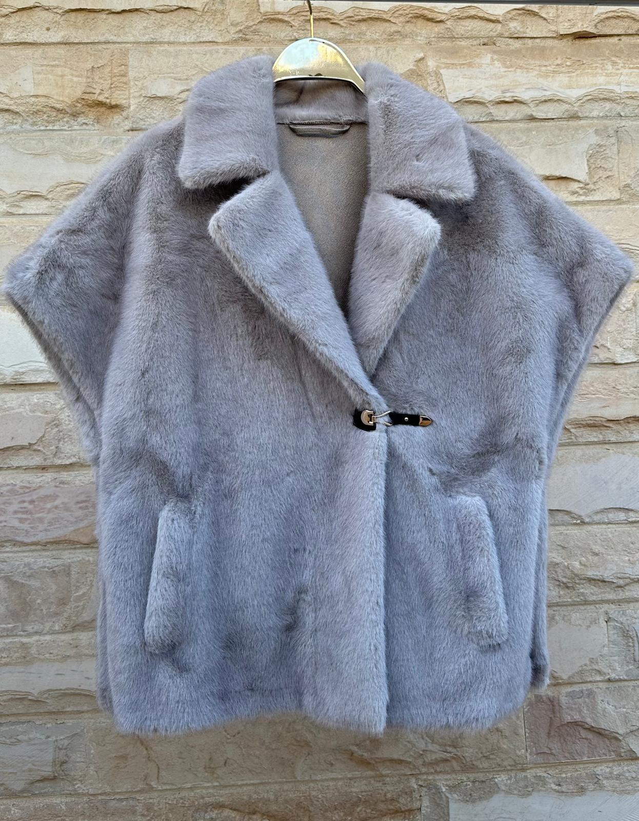 Lapel Soft High Collared Single Strap Buttoned Fitted Cut Faux Fur Vest with slip side pockets, adjustable waist back details and short sleeve
