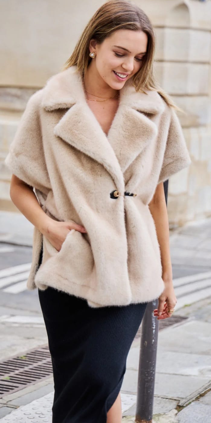 Jackie سترة كبيرة الحجم من الفرو الصناعي