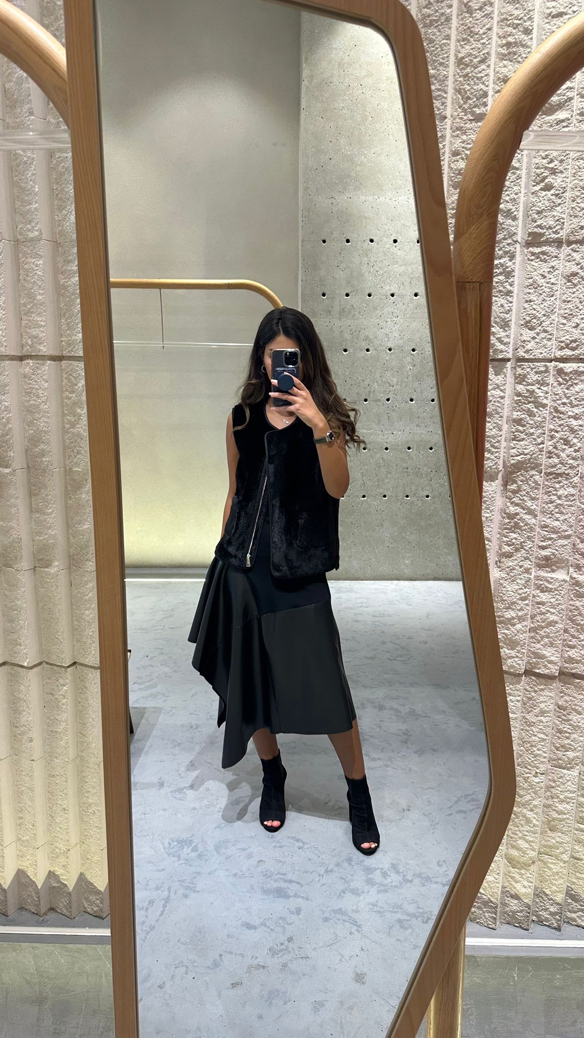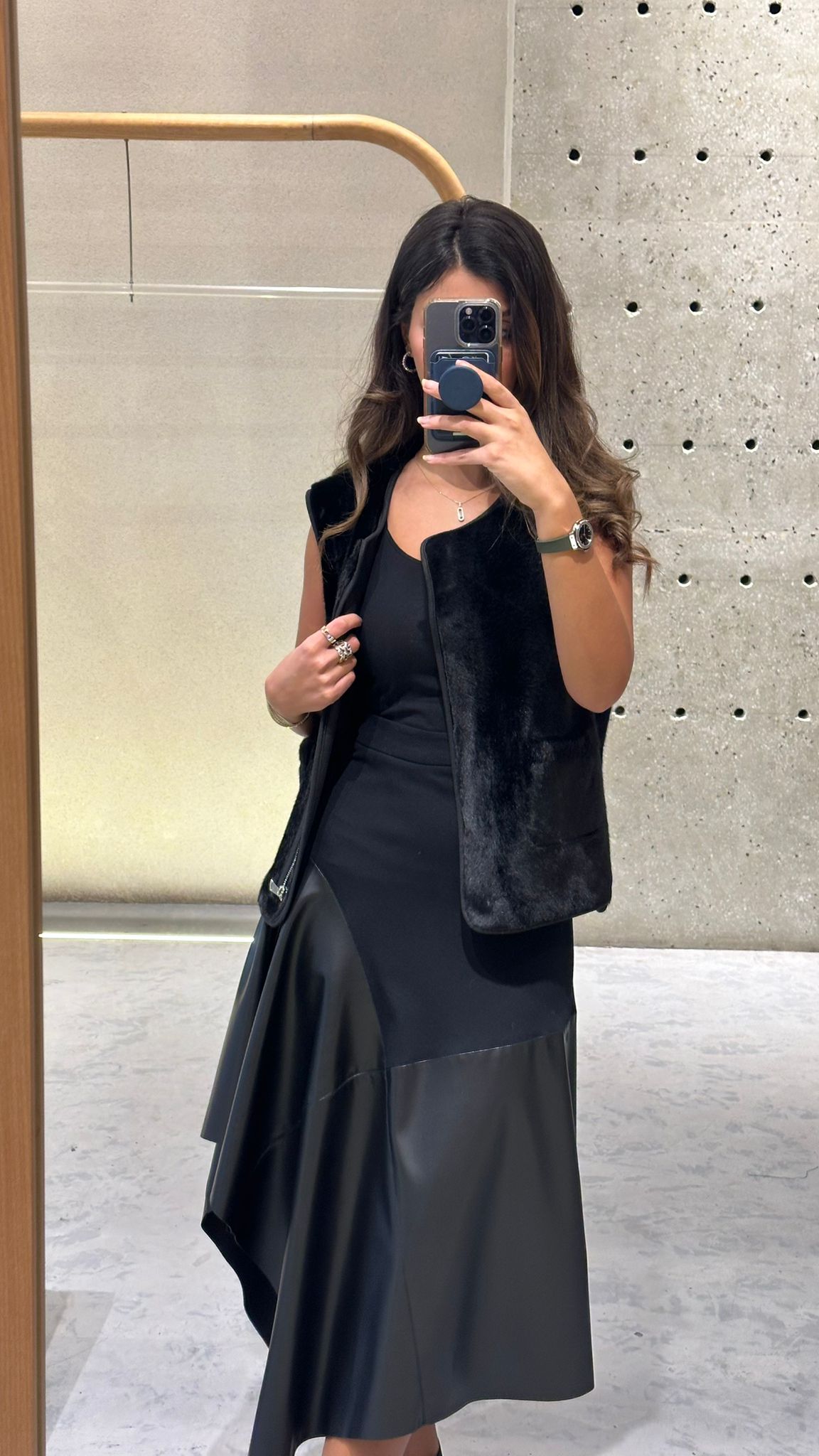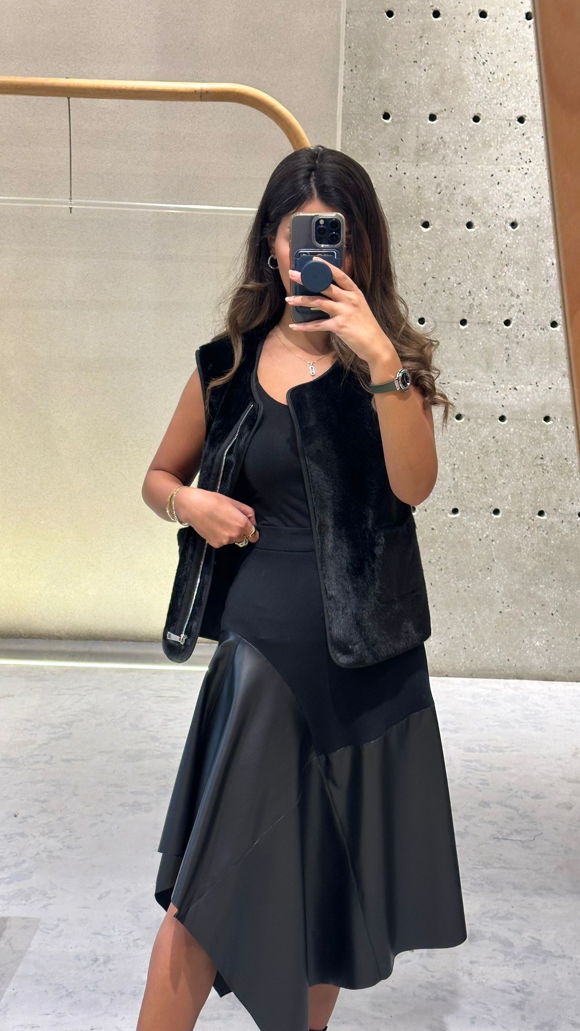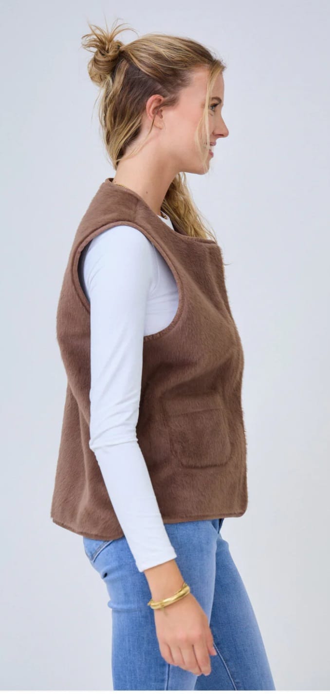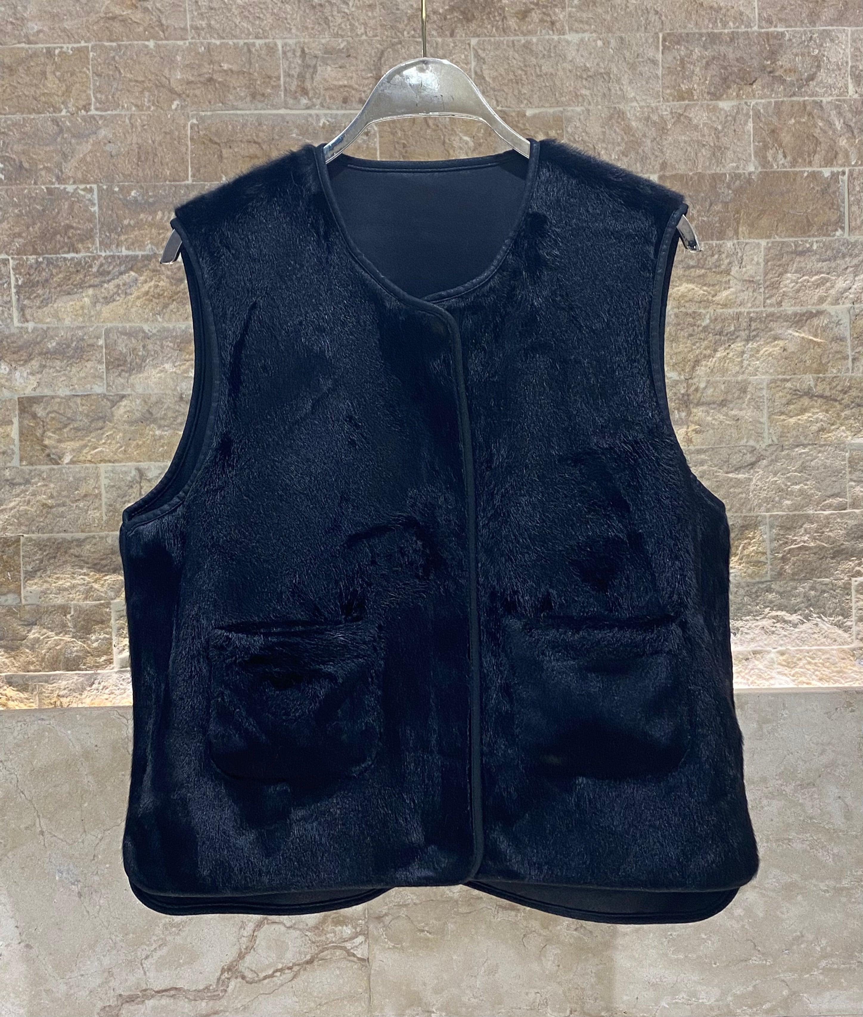Round Neck Placket Zippered Faux Fur Vest with patch pockets