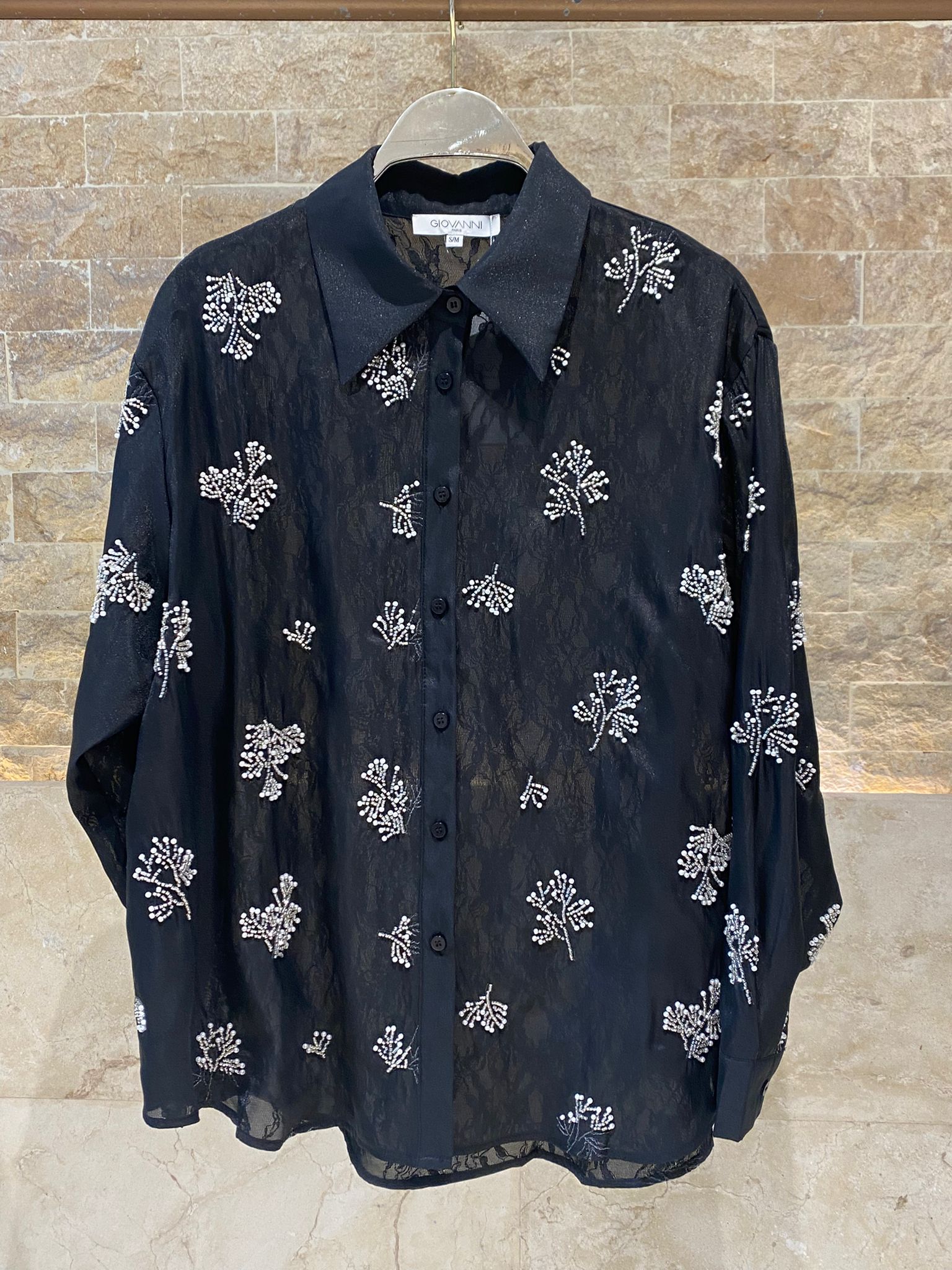 Jessy Beads/Pearls Detailed Sheer Shirt قميص شفاف مزين بالخرز/اللؤلؤ
