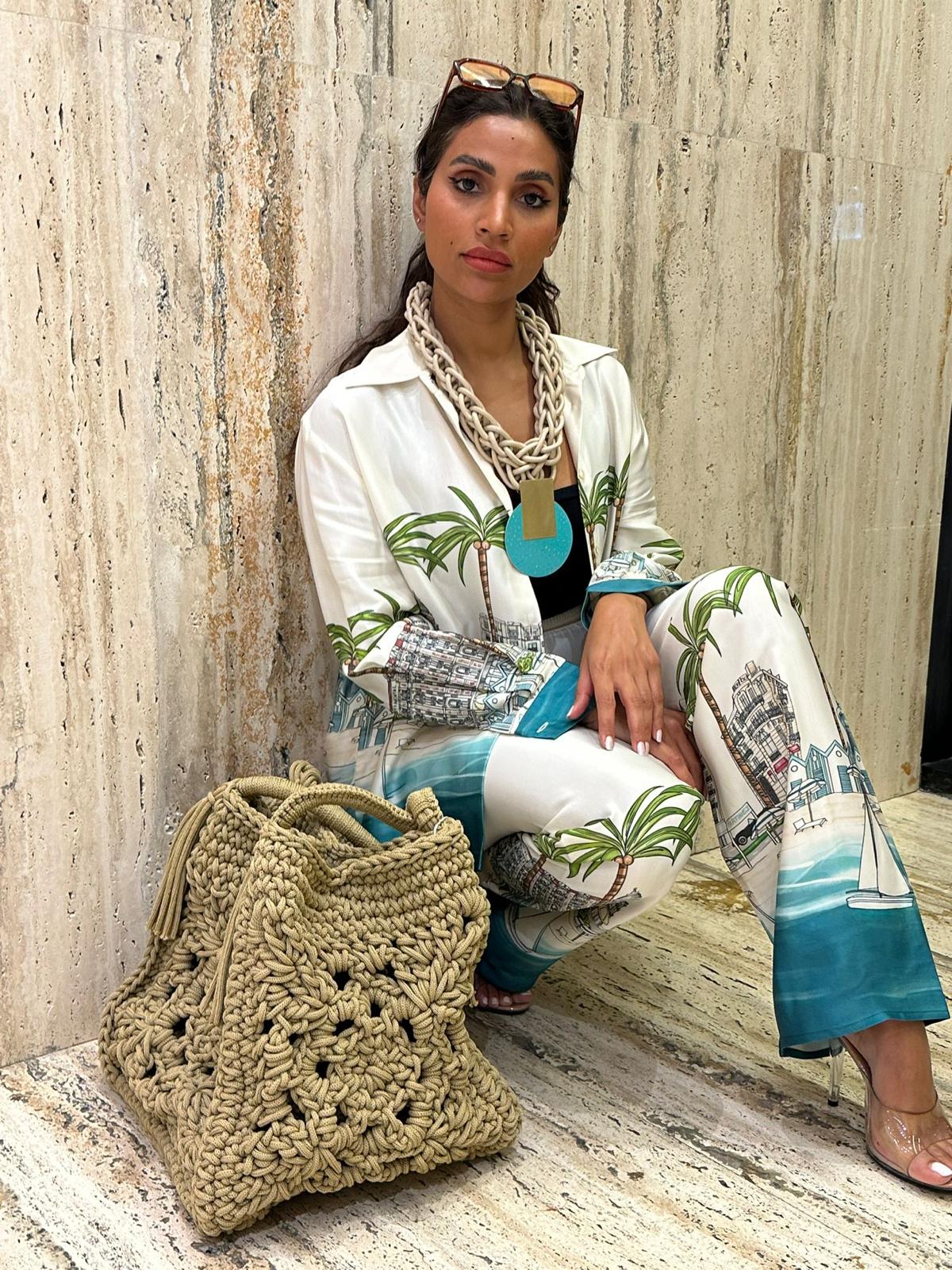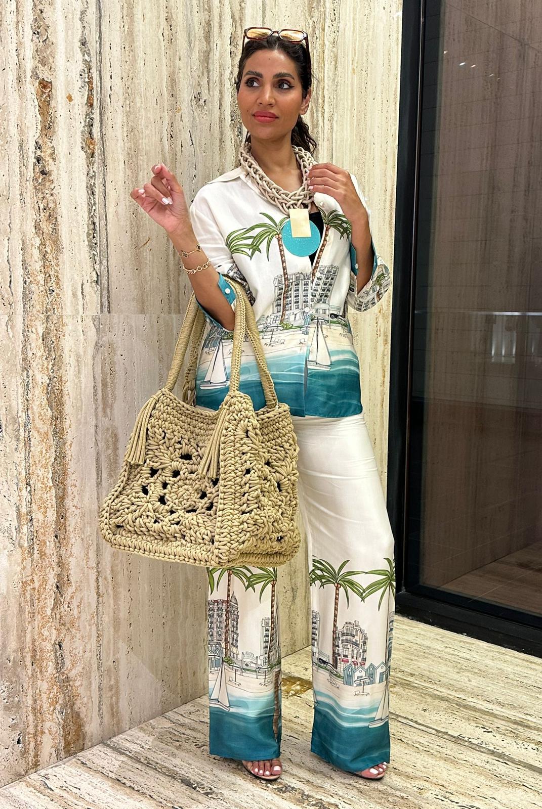 The La Croisette Pants (Product Code: MVPE4PA133) are a stylish addition to any summer wardrobe, designed for comfort and flair. Featuring a low-waisted cut and an elastic waistband, these pants offer ease of wear while ensuring you look chic. Made from flowing cream viscose, they are adorned with artistic prints that bring a unique touch to your outfit. The handmade and digitally printed designs showcase the essence of La Croisette, with the "MVP à La Plage" detail adding a personalized flair. Perfect for casual outings, beach days, or relaxed gatherings, pair these wide-leg trousers with fitted tops for an effoltressly stylish look.