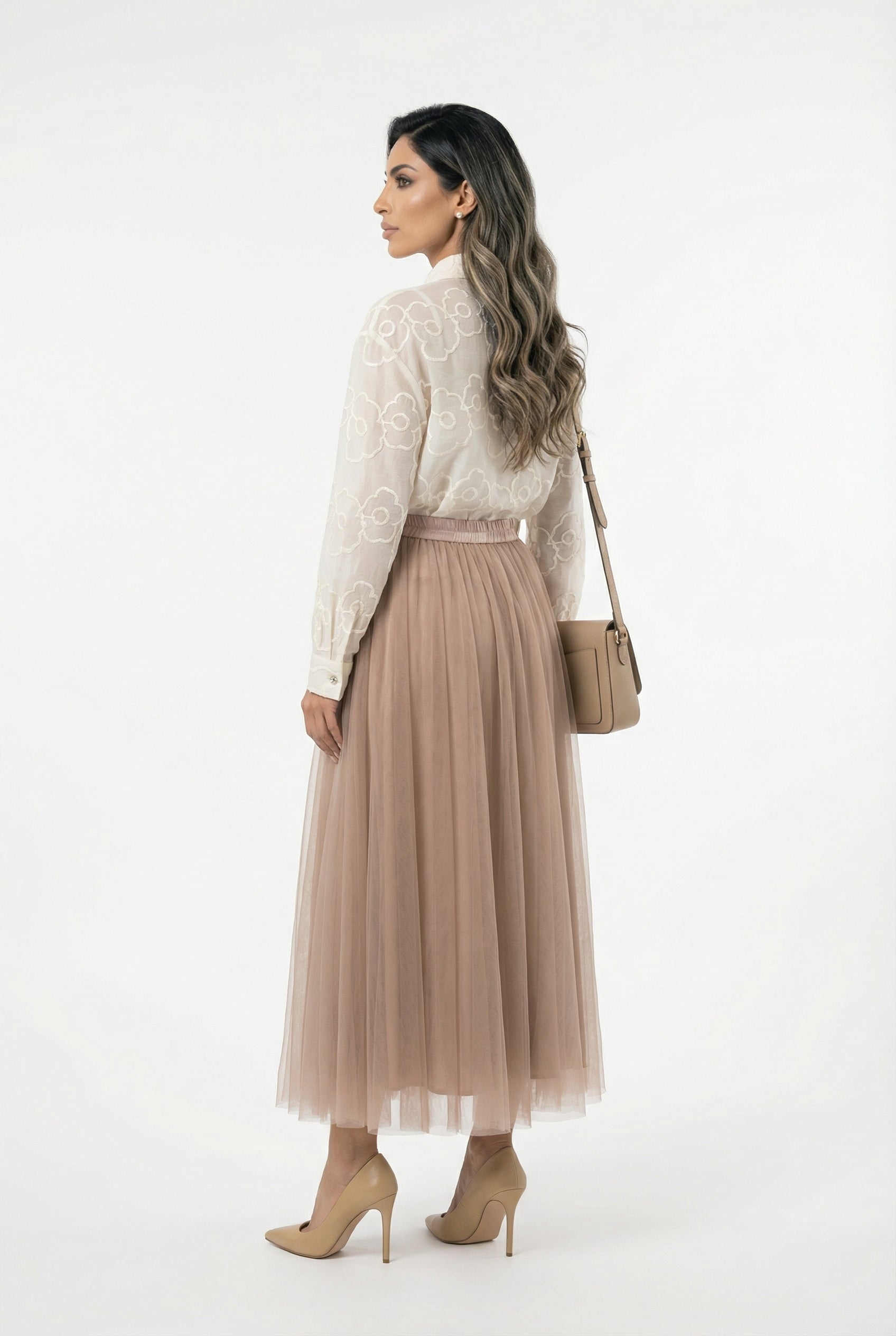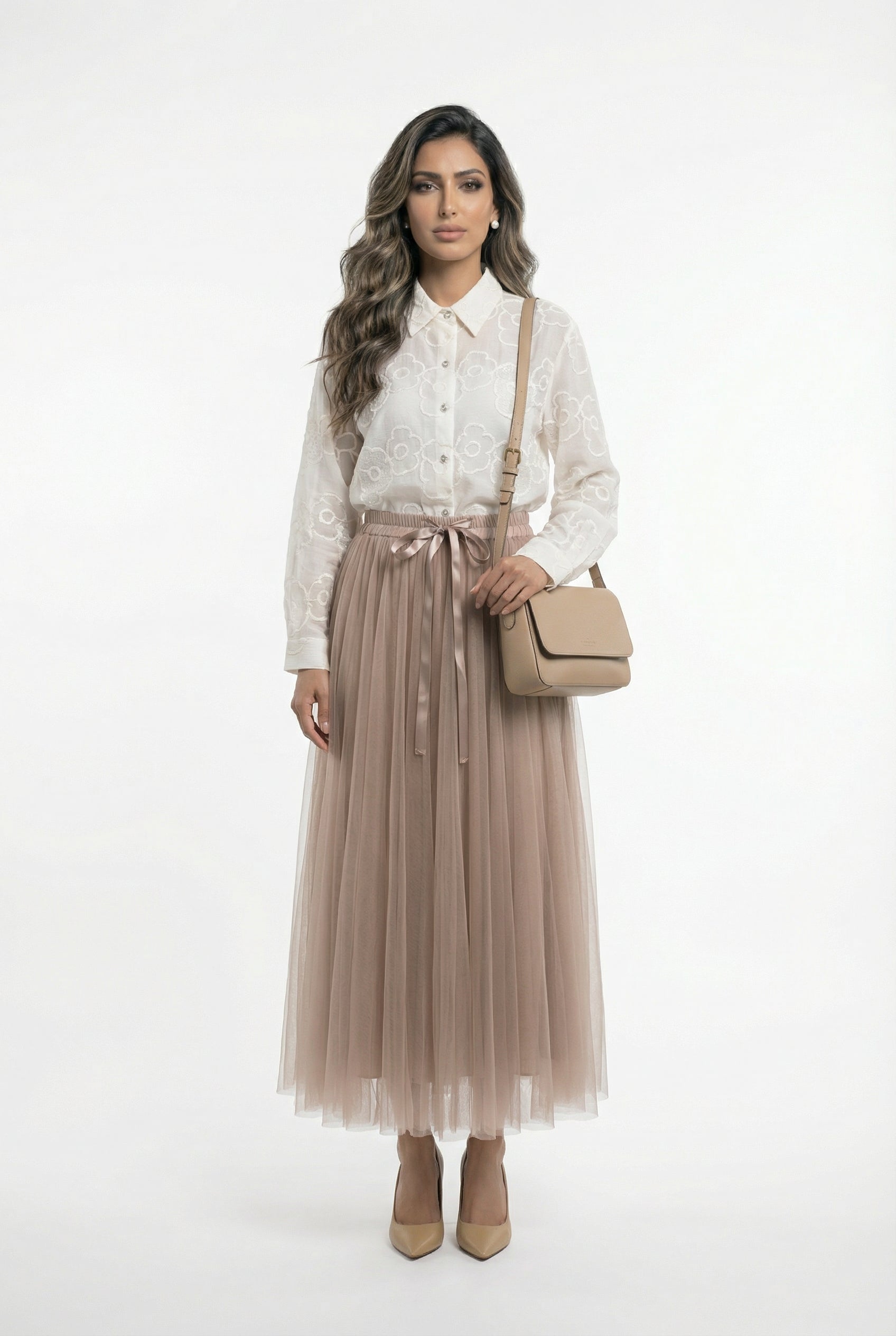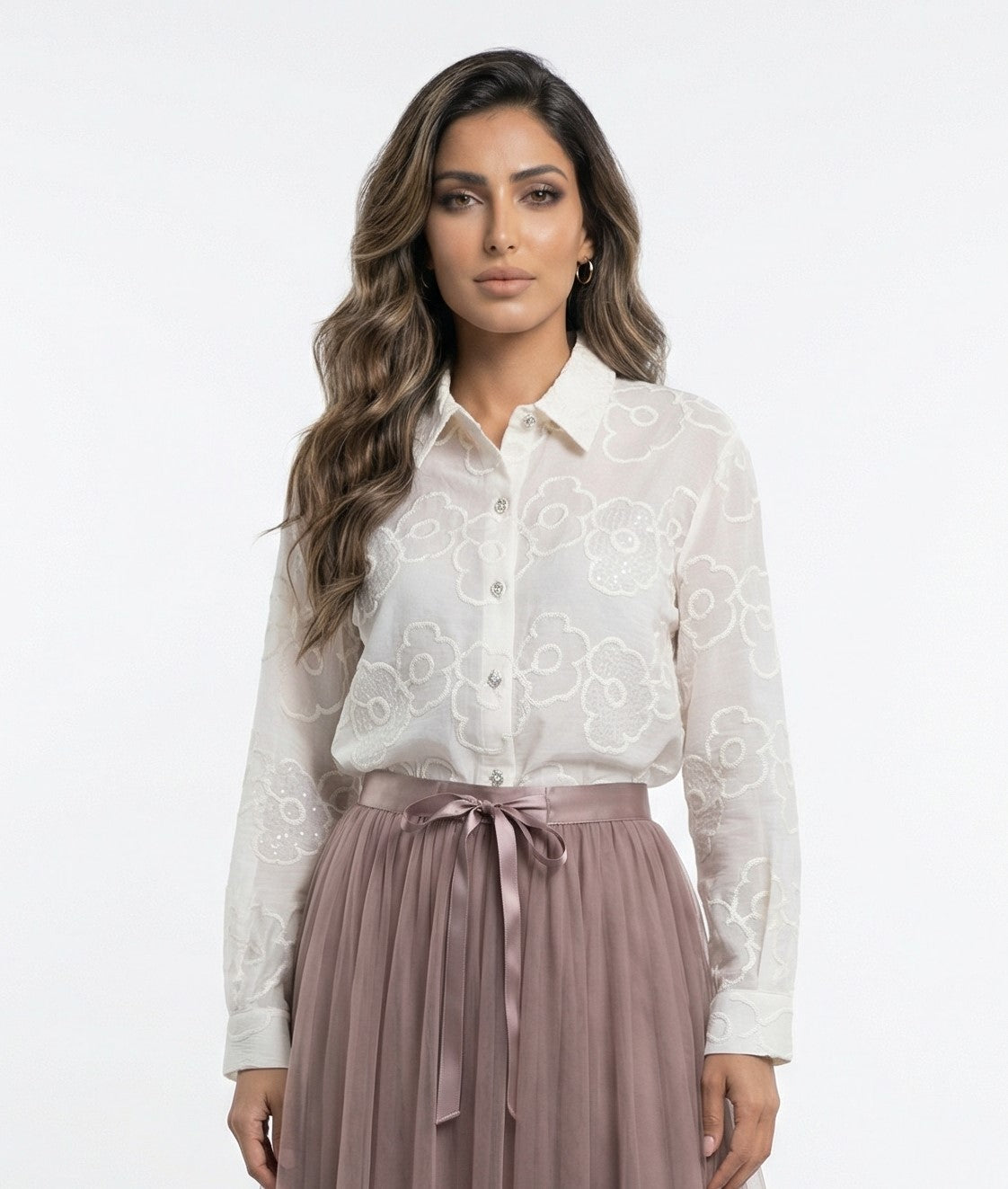Wolfie Floral Embroidered Sheer Shirt قميص شفاف مطرز بالزهور